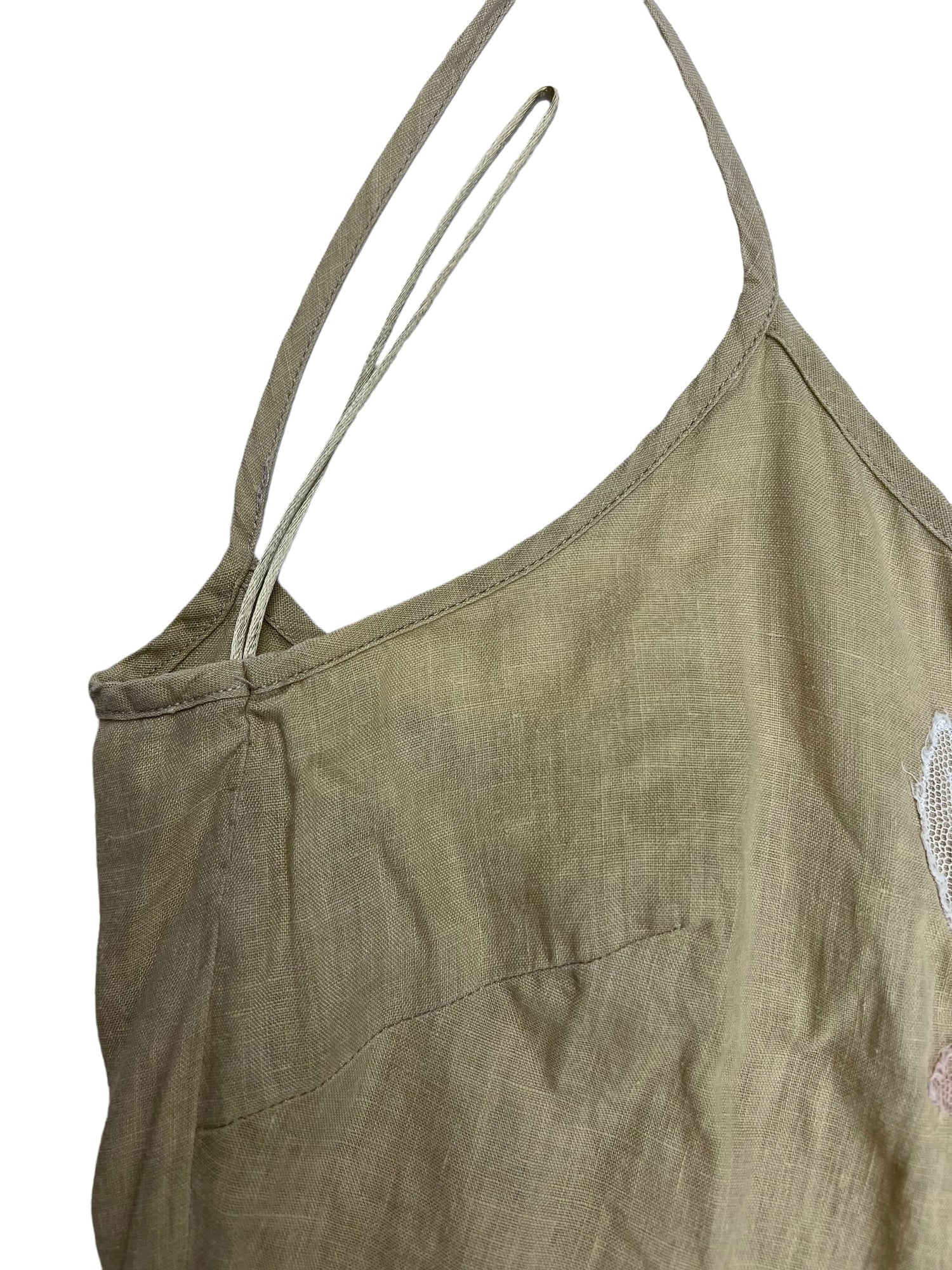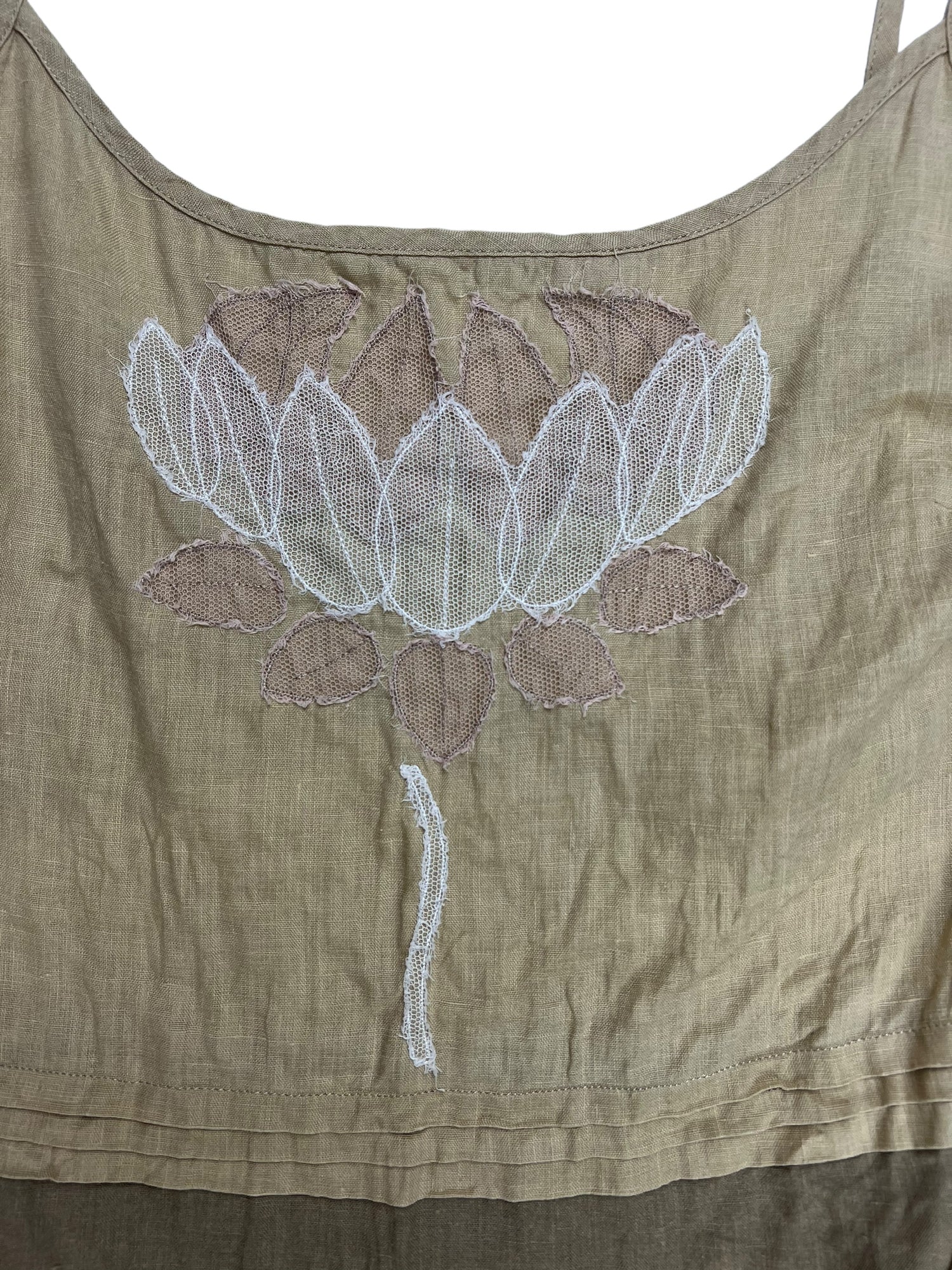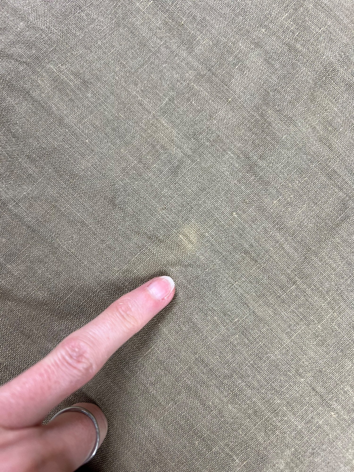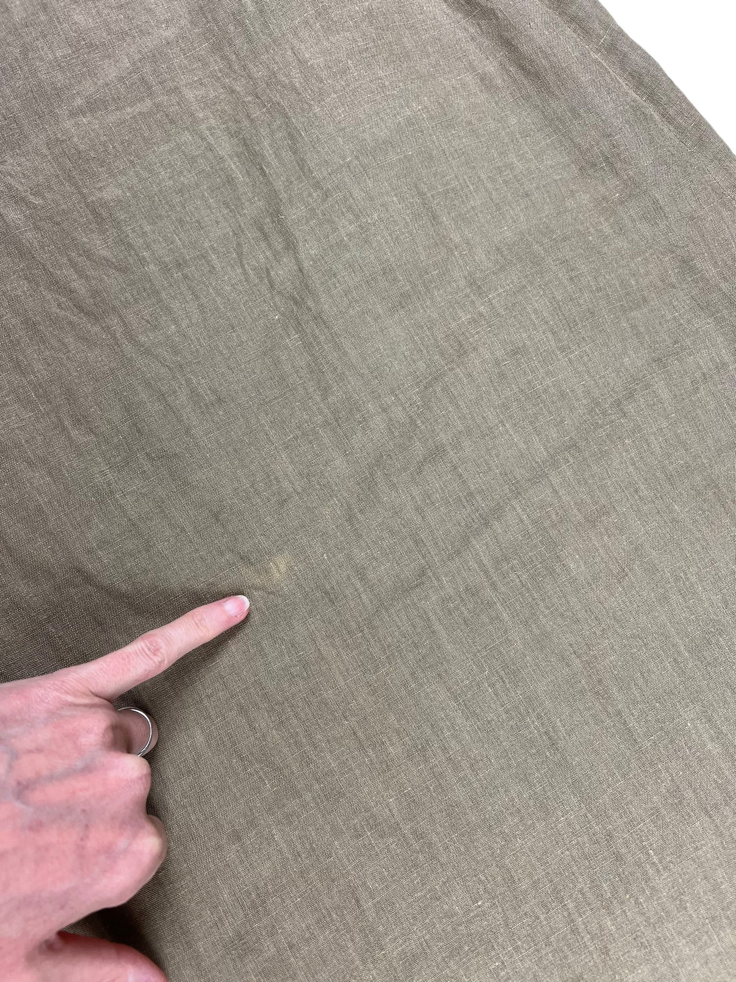 🐥 Condition is good. No pulls, holes, or odour. Armpits have faint marks are shown. There is one very small light mark right in the centre back as shown. I have hand washed this in baking soda and white vinegar. Any marks shown are permanent, but they certainly aren’t glaringly obvious when worn. It could easily be dyed a darker colour. 100% linen. Hand wash at 30 degrees.