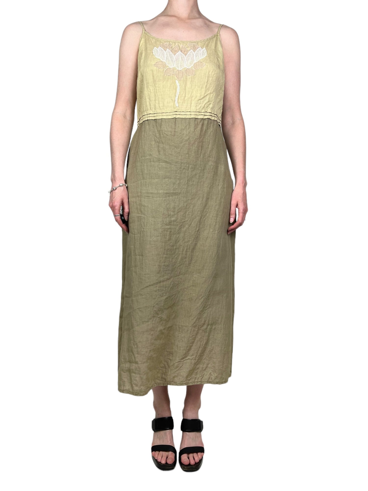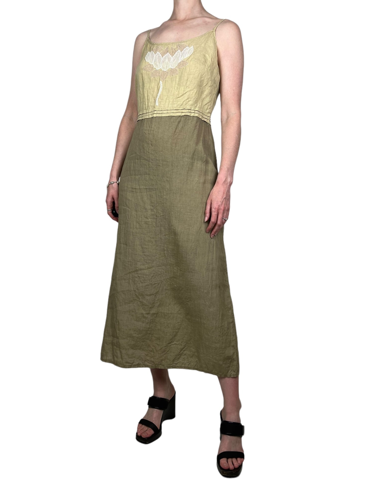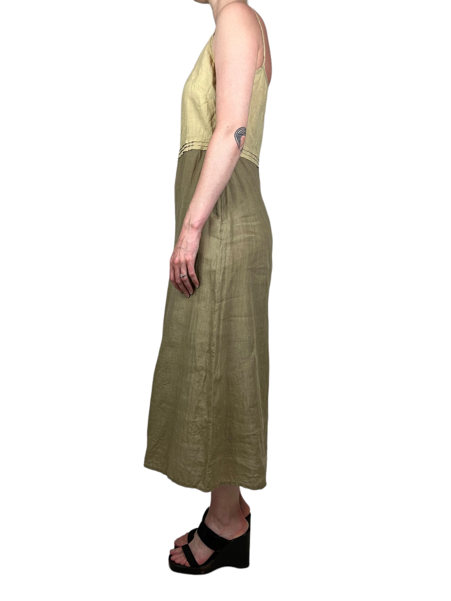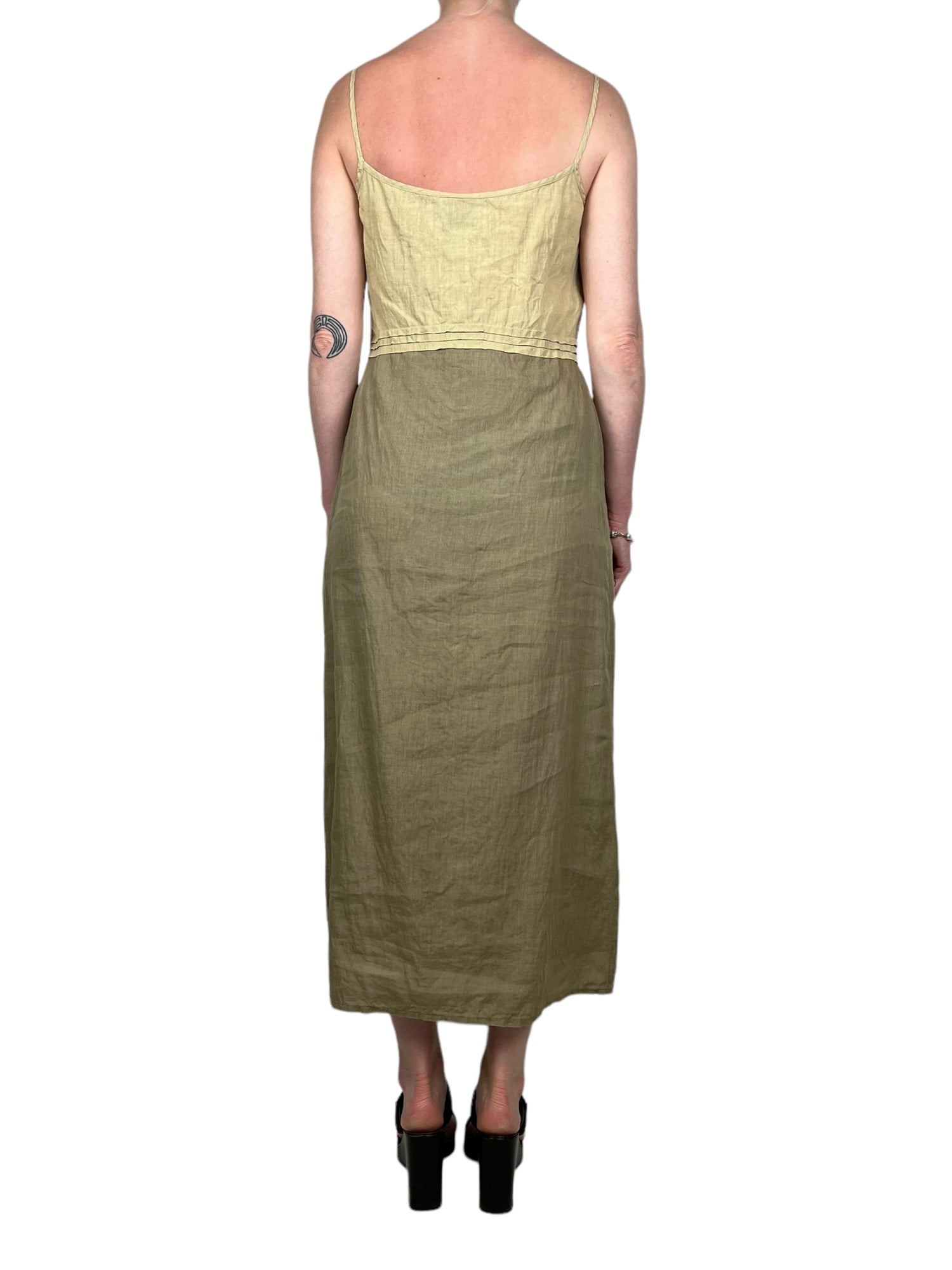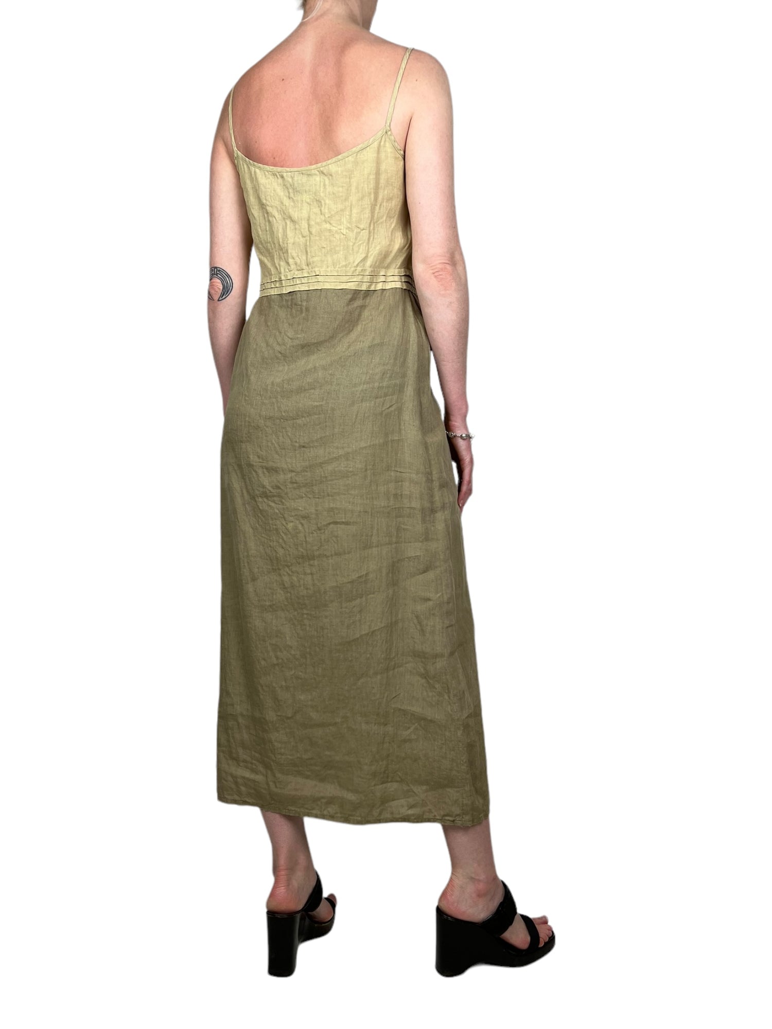 🐥 Condition is good. No pulls, holes, or odour. Armpits have faint marks are shown. There is one very small light mark right in the centre back as shown. I have hand washed this in baking soda and white vinegar. Any marks shown are permanent, but they certainly aren’t glaringly obvious when worn. It could easily be dyed a darker colour. 100% linen. Hand wash at 30 degrees.