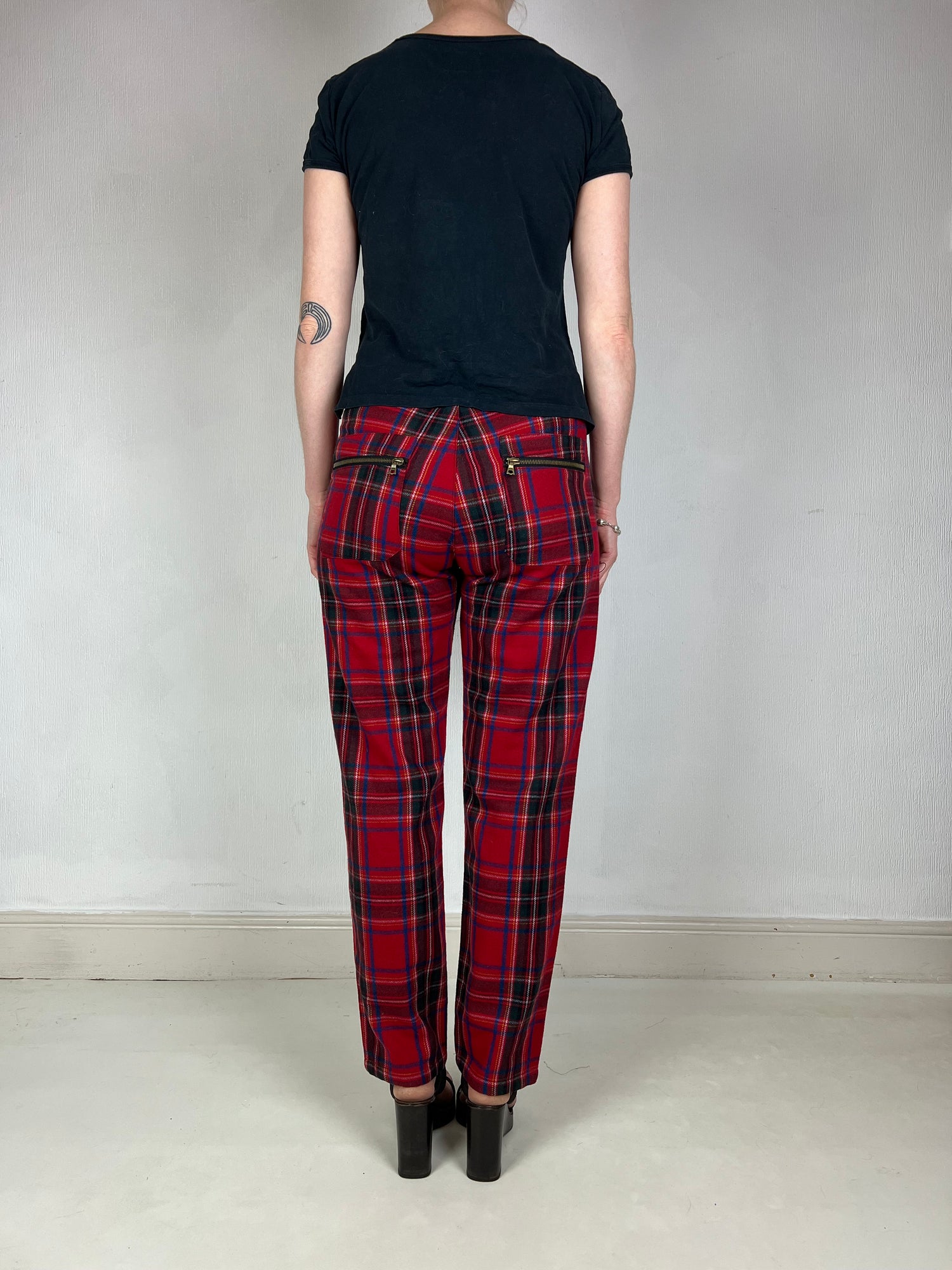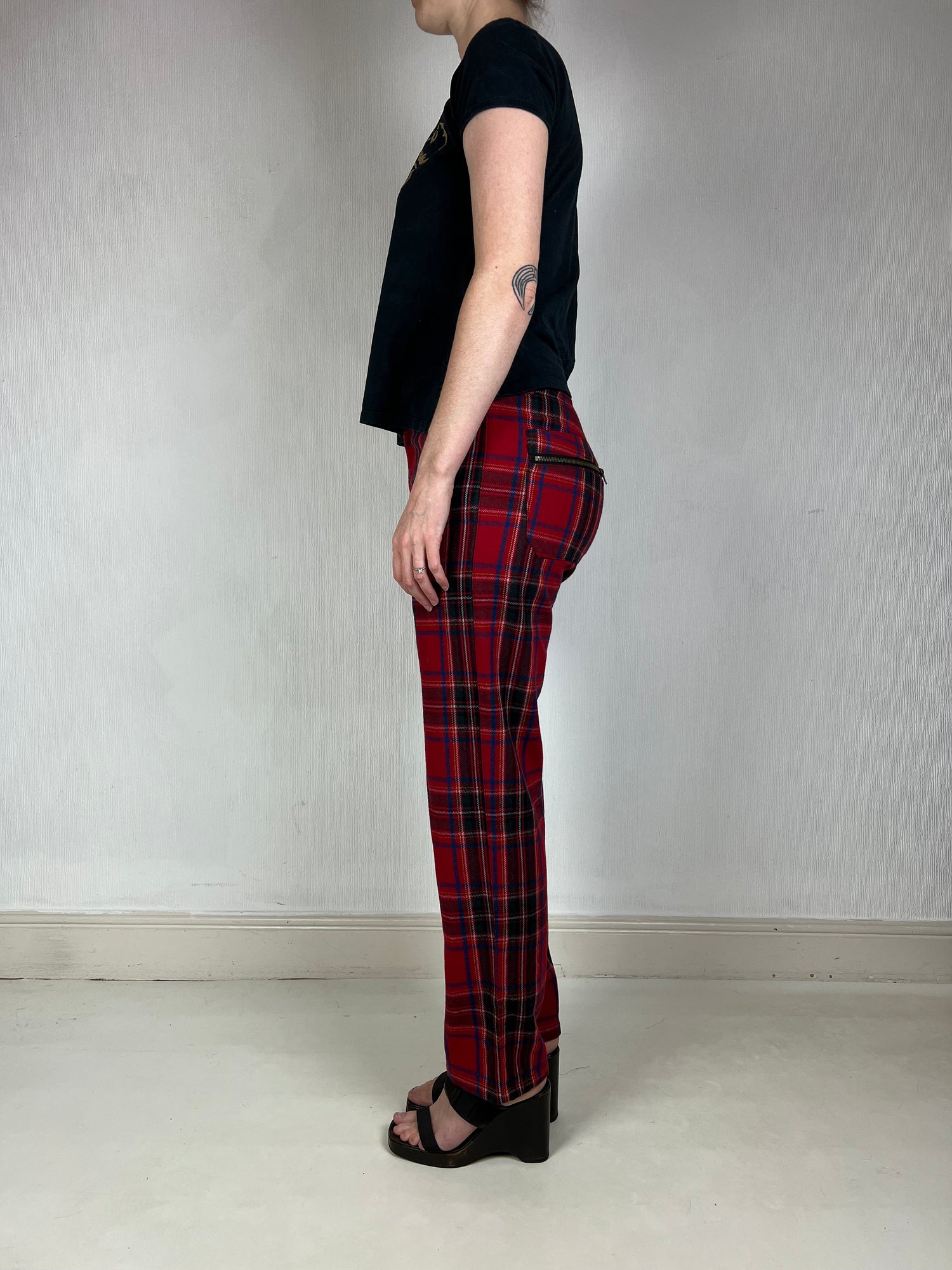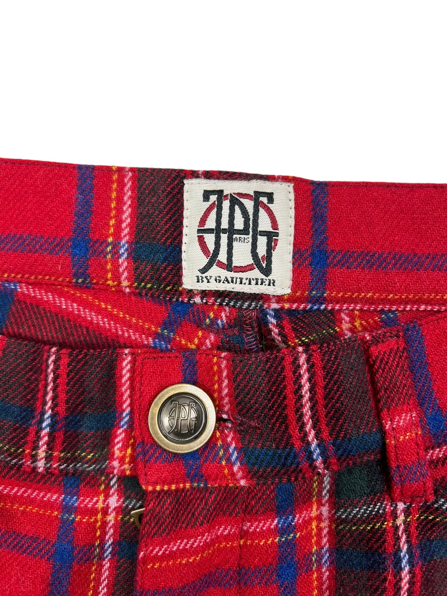 Jean Paul Gaultier 2000s JPG label red wool blend tartan trousers. Size UK10/12. All details below👇