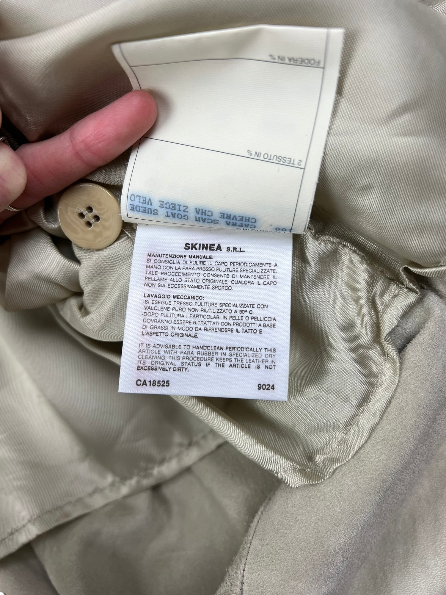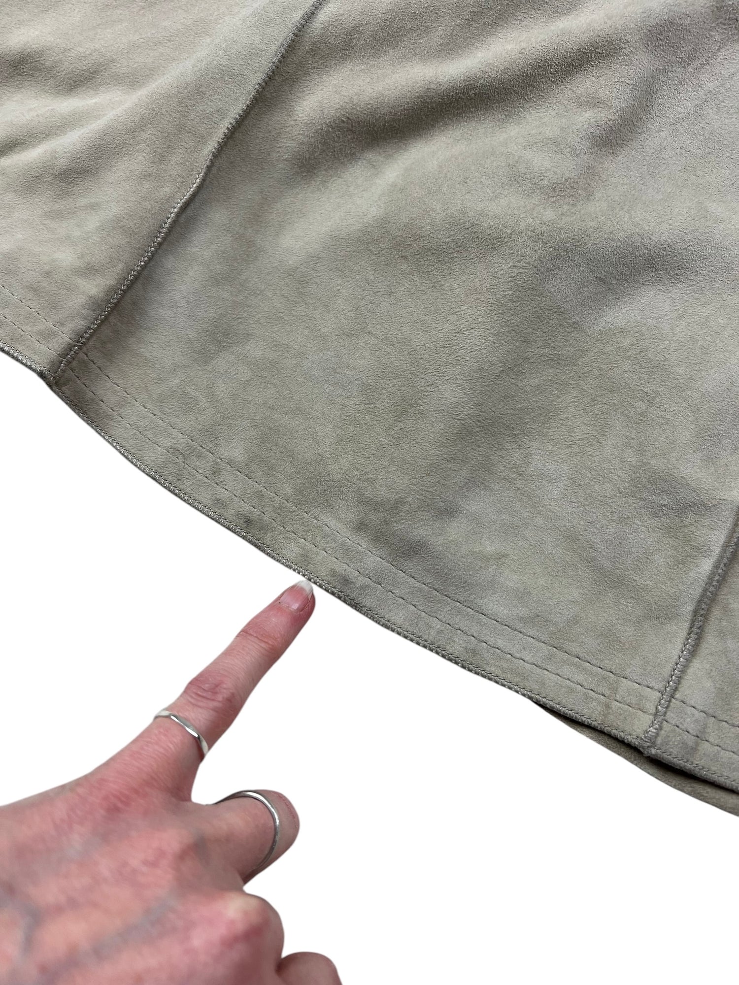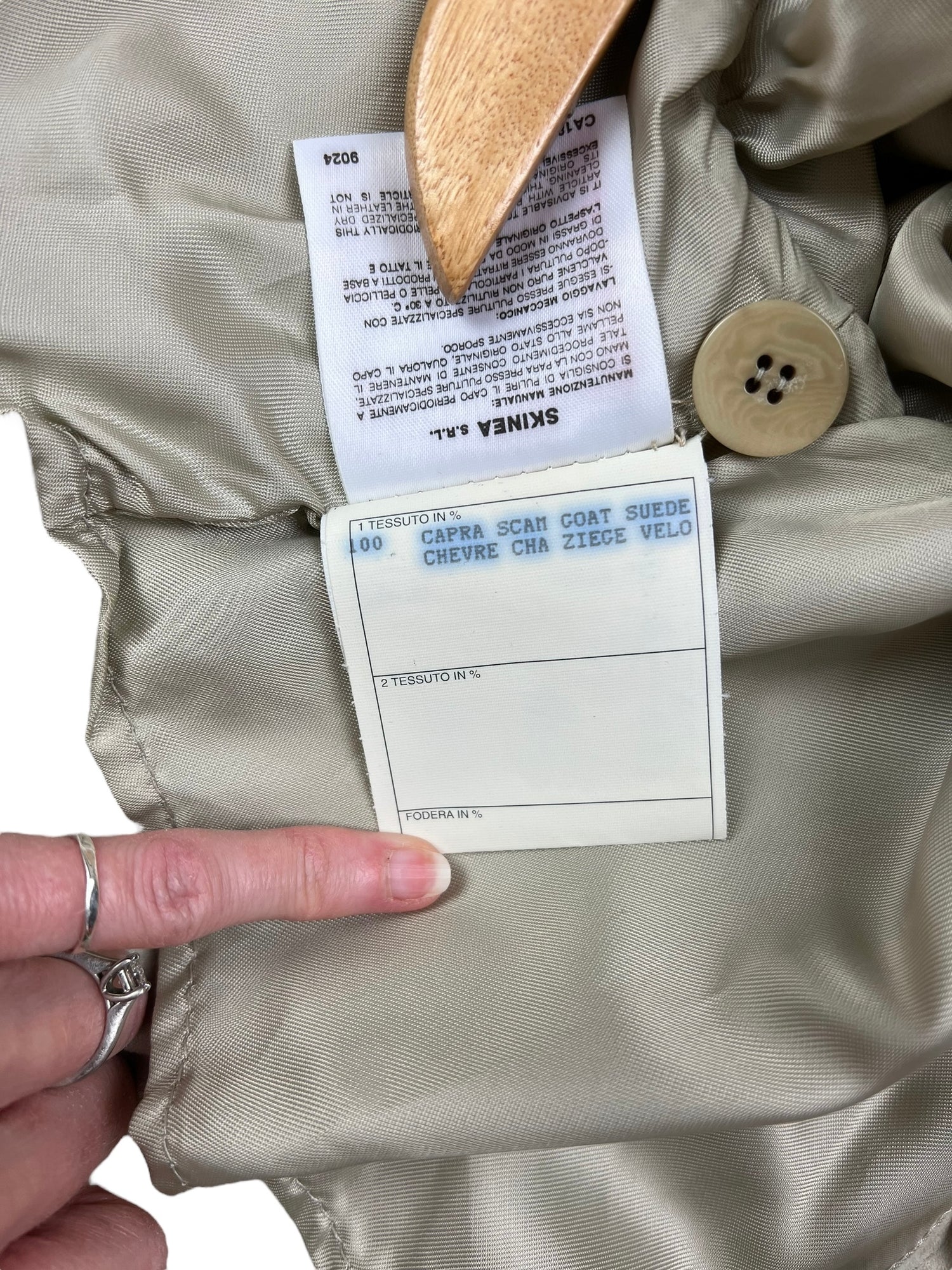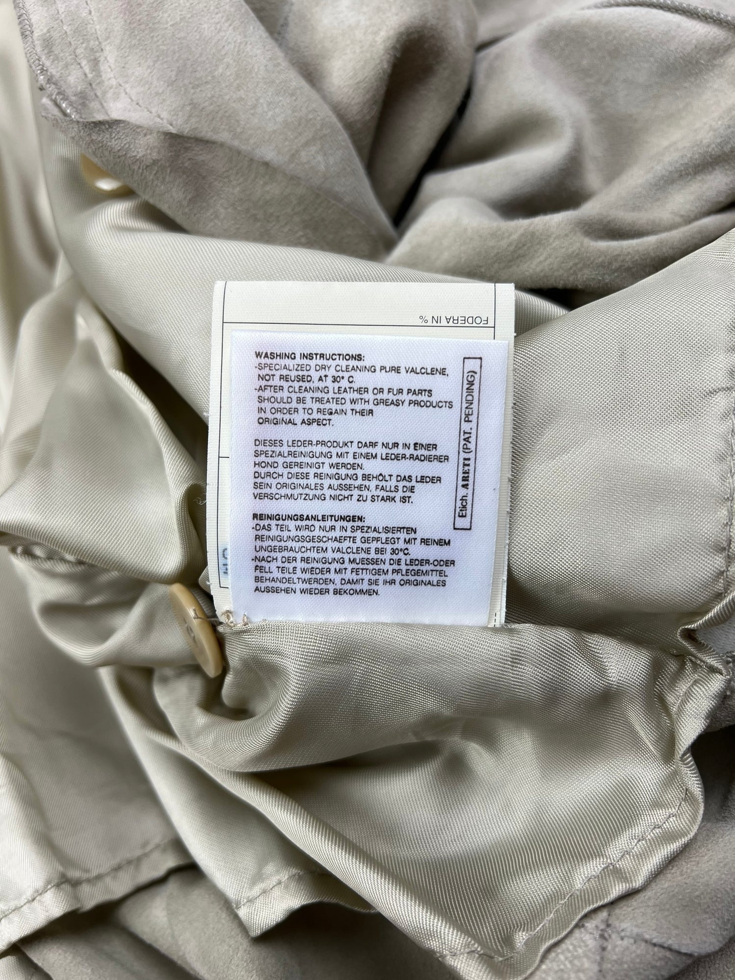 🐥 Condition is very good with minimal signs of wear. Several small but hard to see spot marks throughout as shown. Armpits clean and stain-free inside and out. 100% suede outer. Lining unknown but likely polyester. Dry clean.