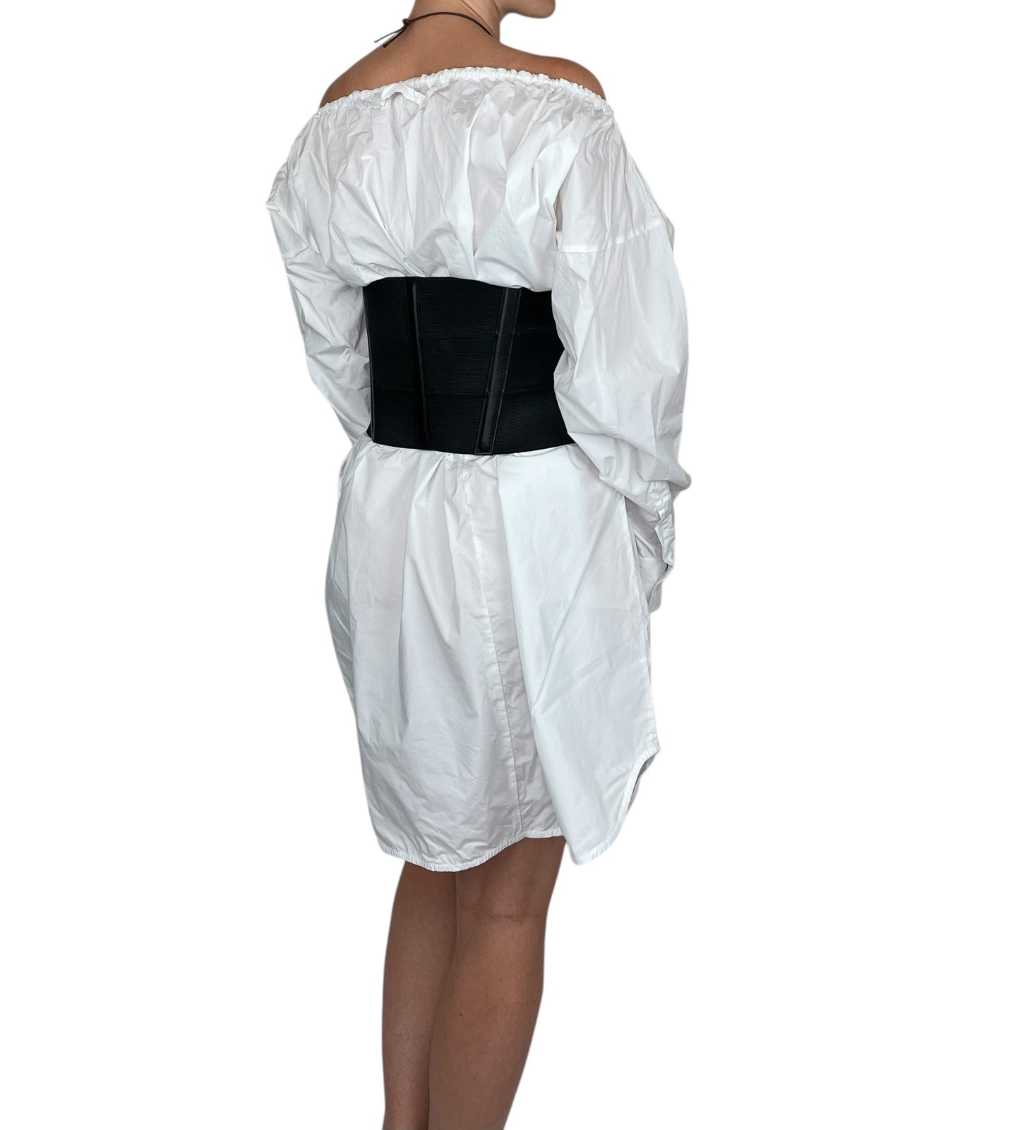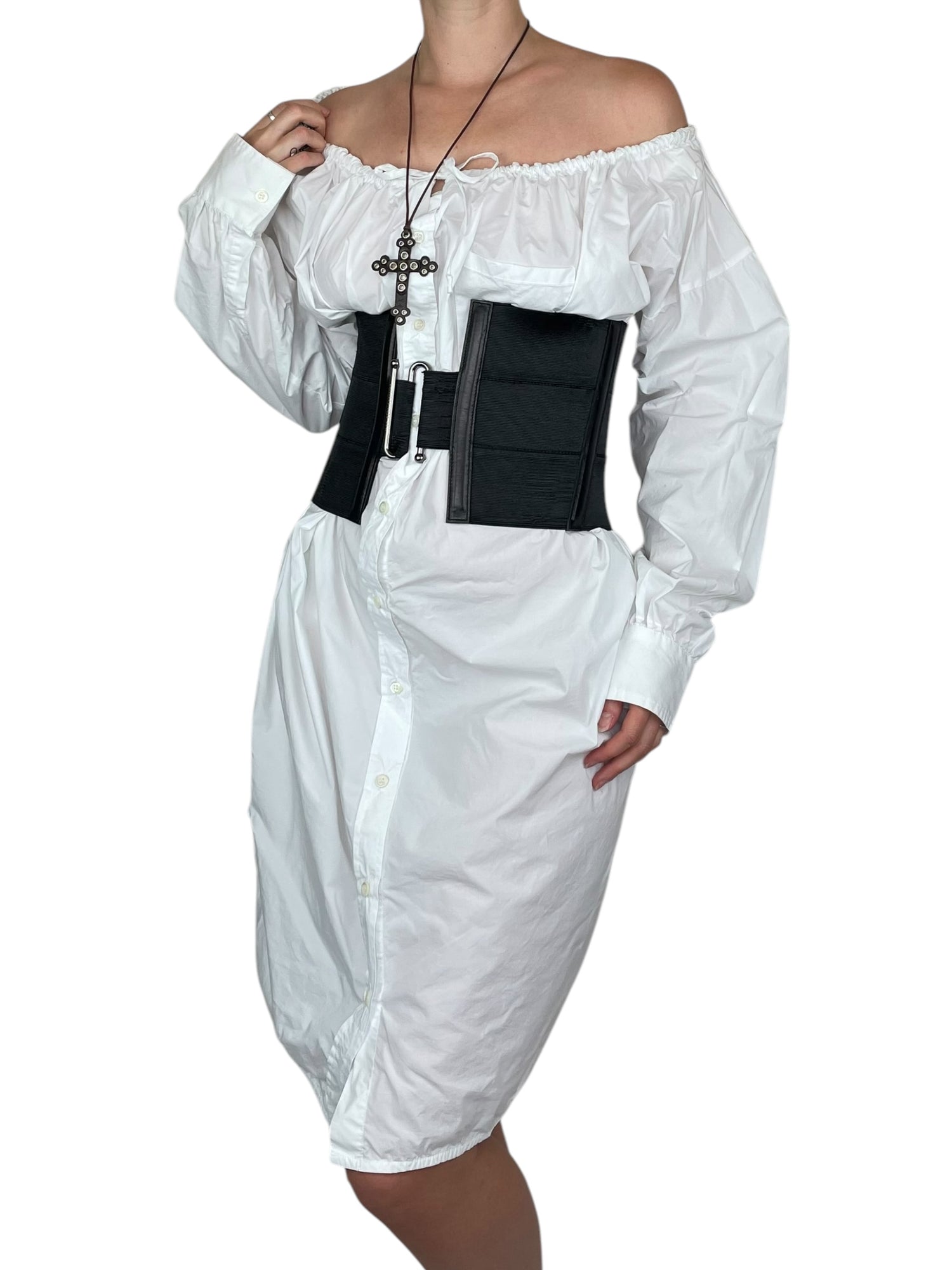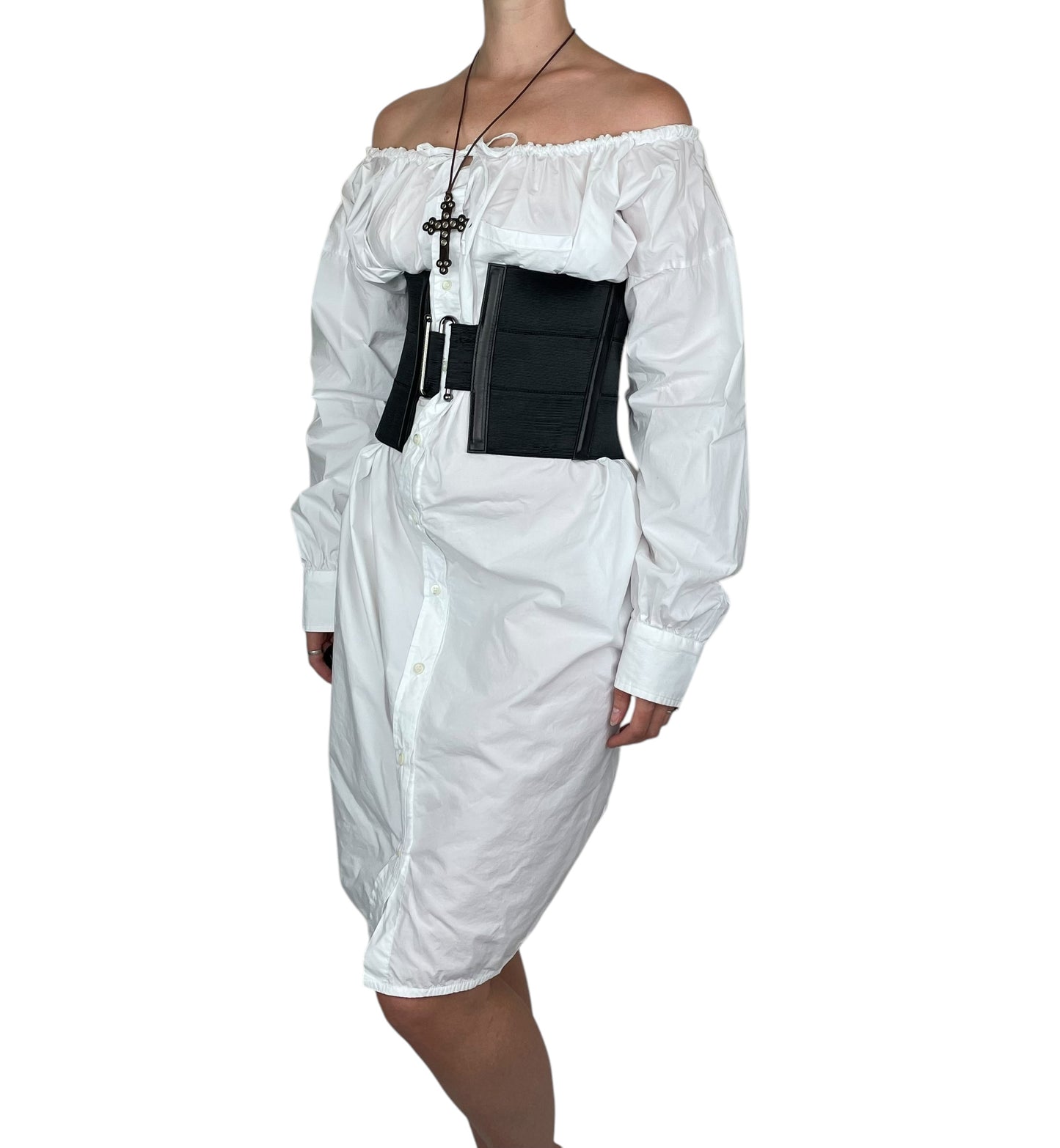 Gaultier black waist cincher only shown for styling as is not for sale. This listing is for the dress ONLY!