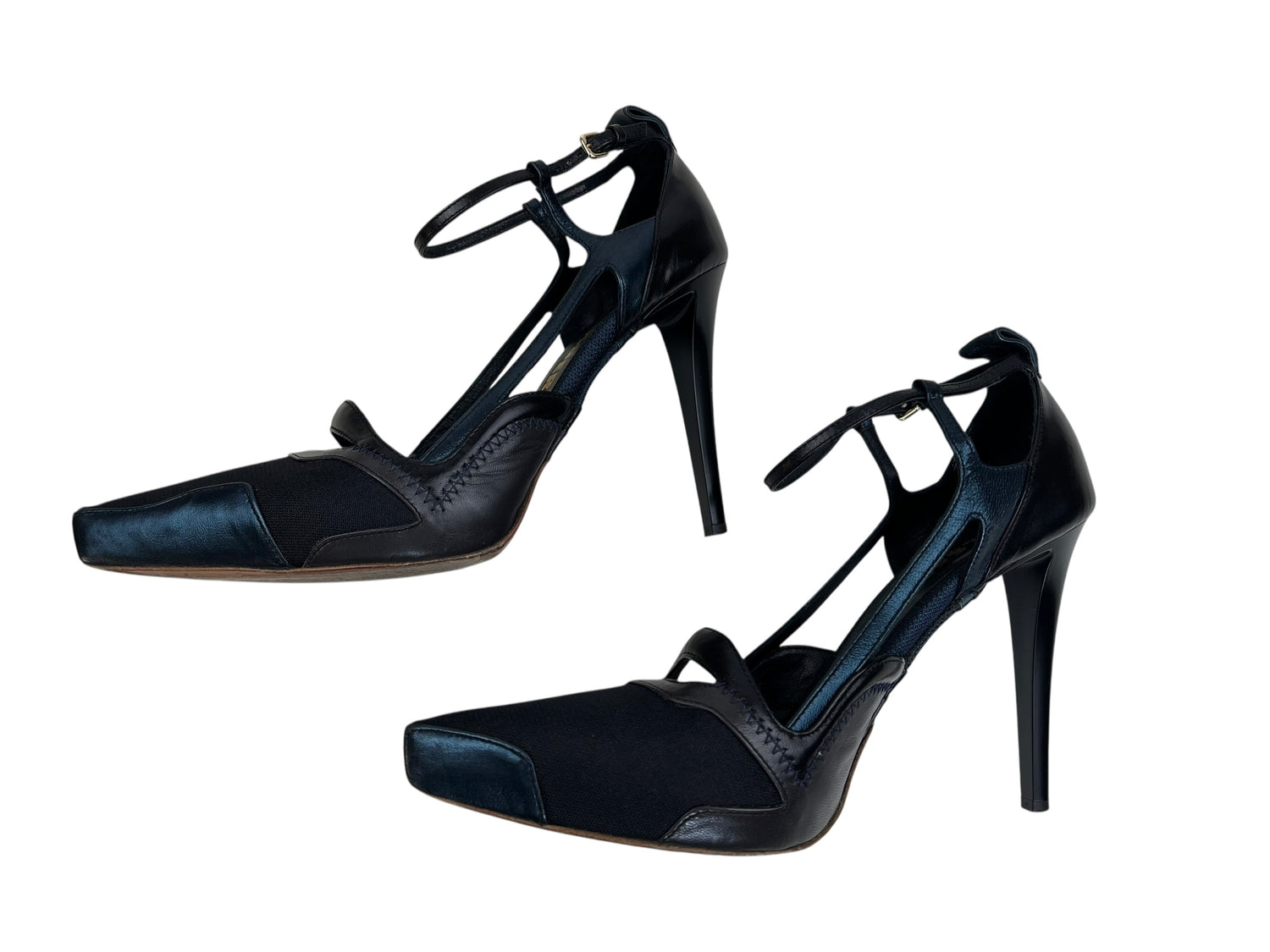 Jil Sander F/W 2012 metallic blue and black heels. EU40.5 UK7.5-8. All details below 👇