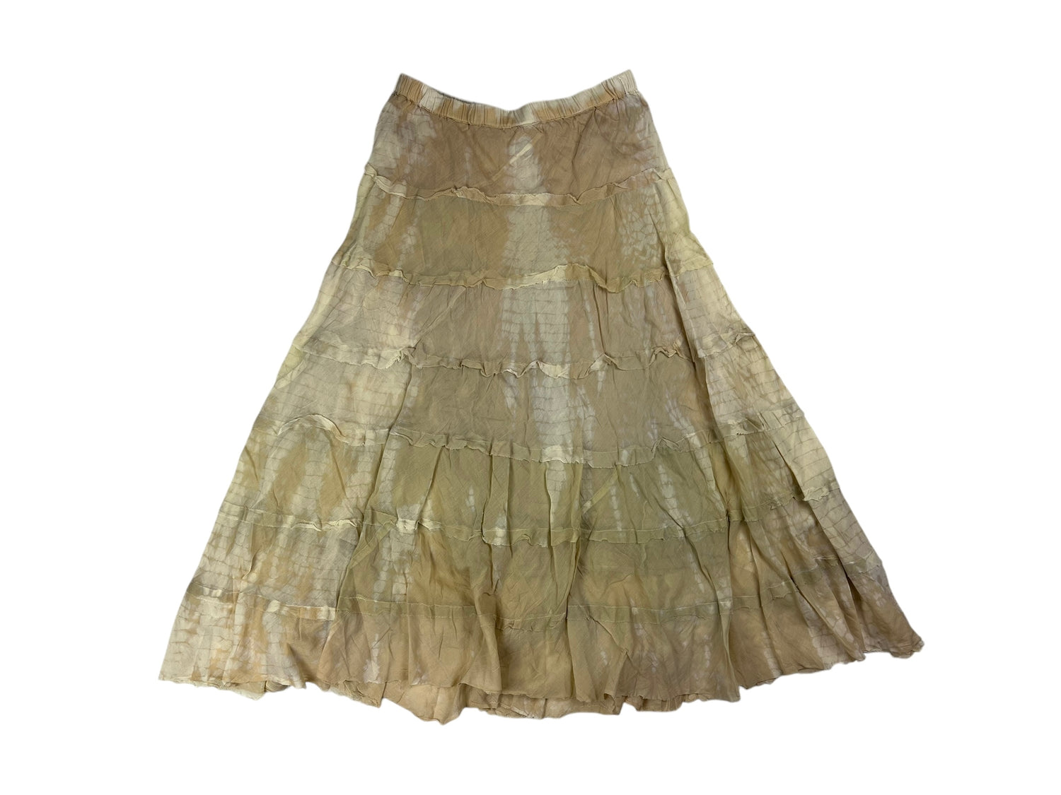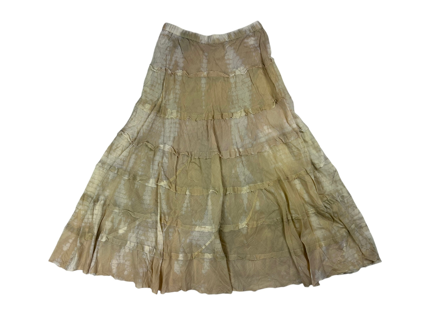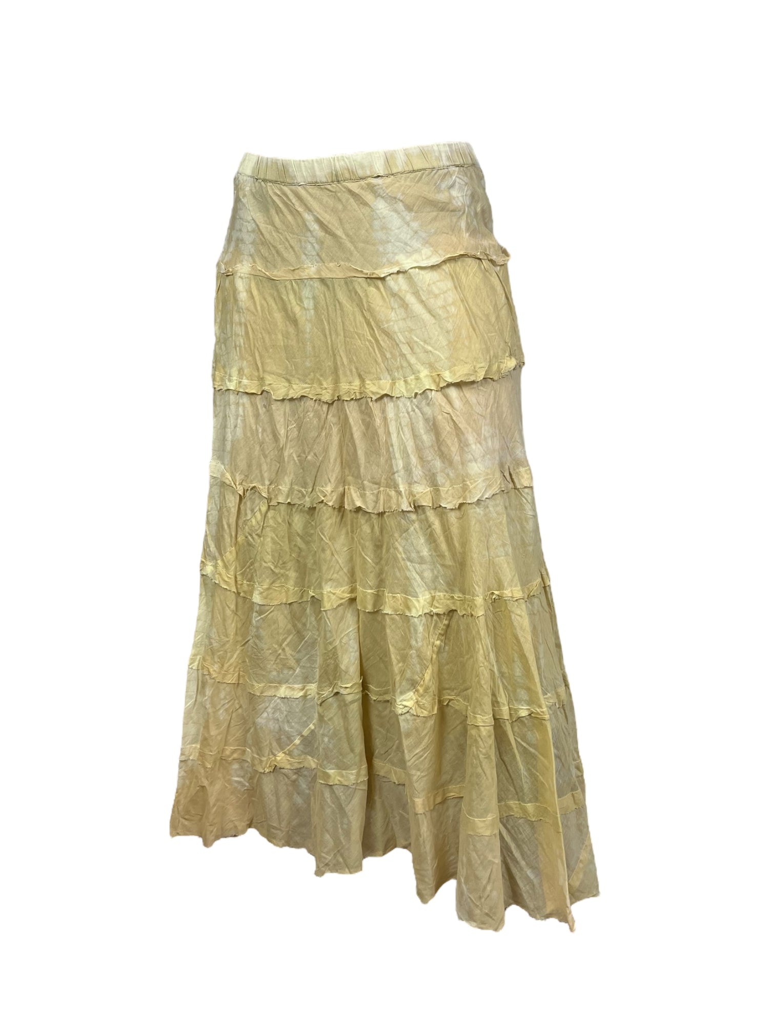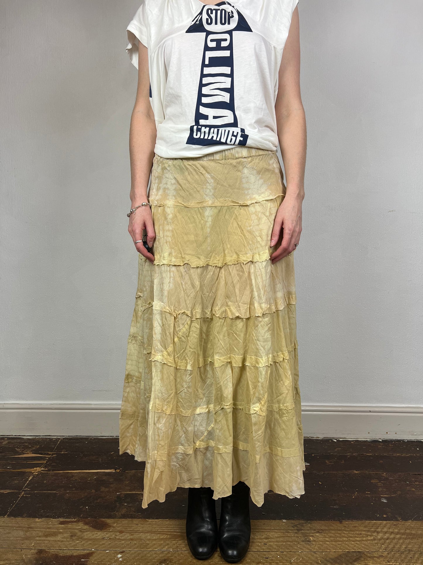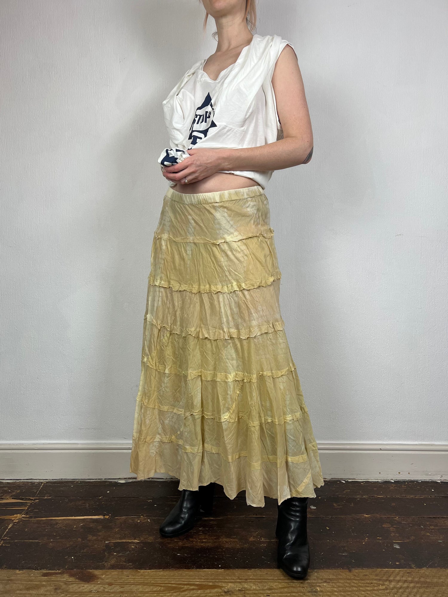 Kushi vintage grunge cottagecore fairy hippy yellow tie dye crinkle maxi skirt. Size S (UK8/10). All details below👇