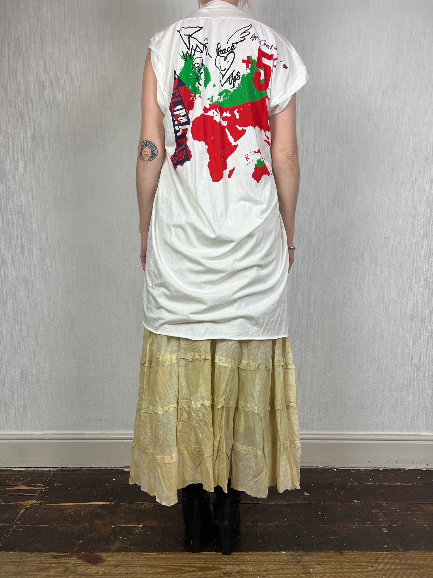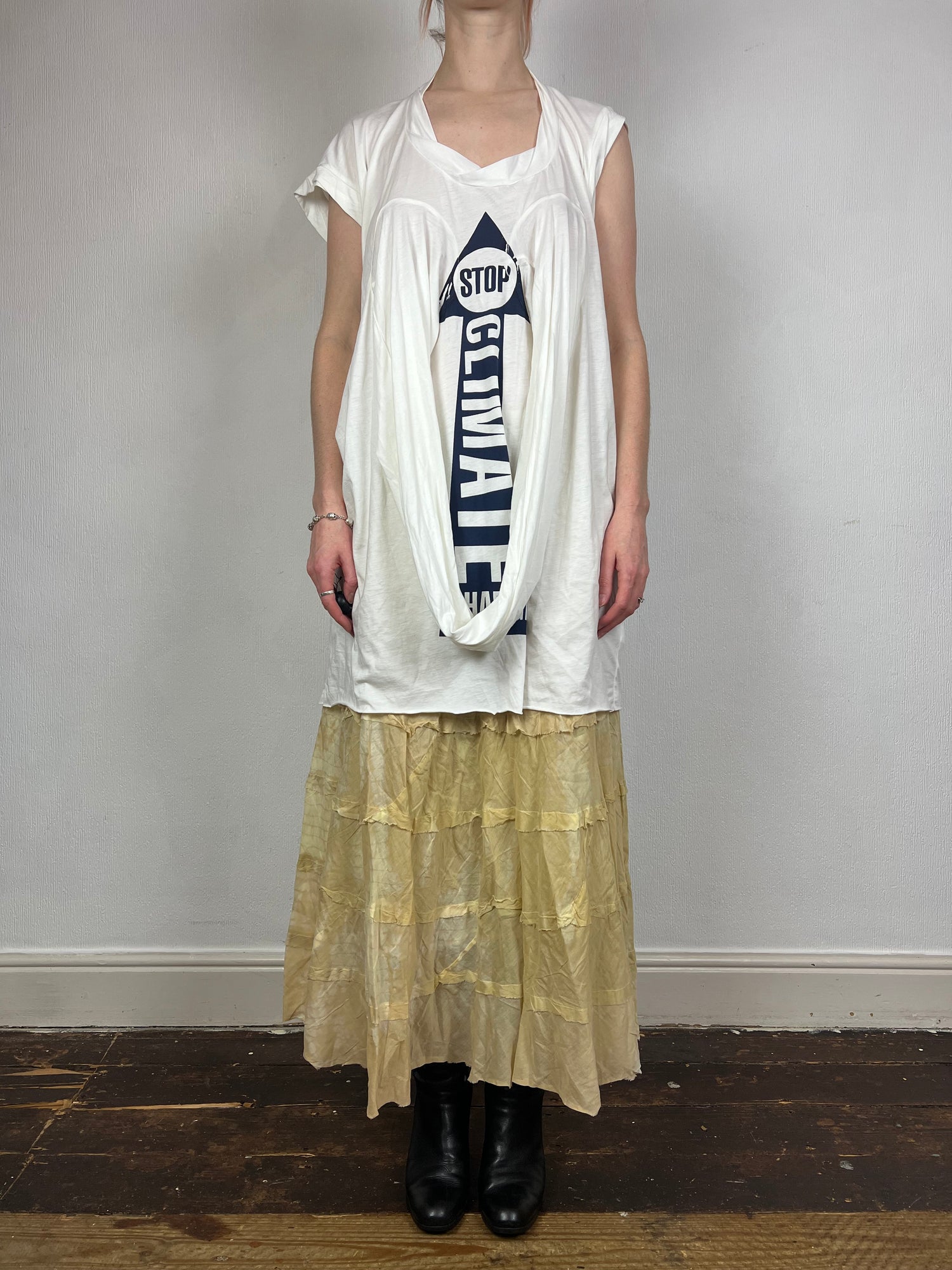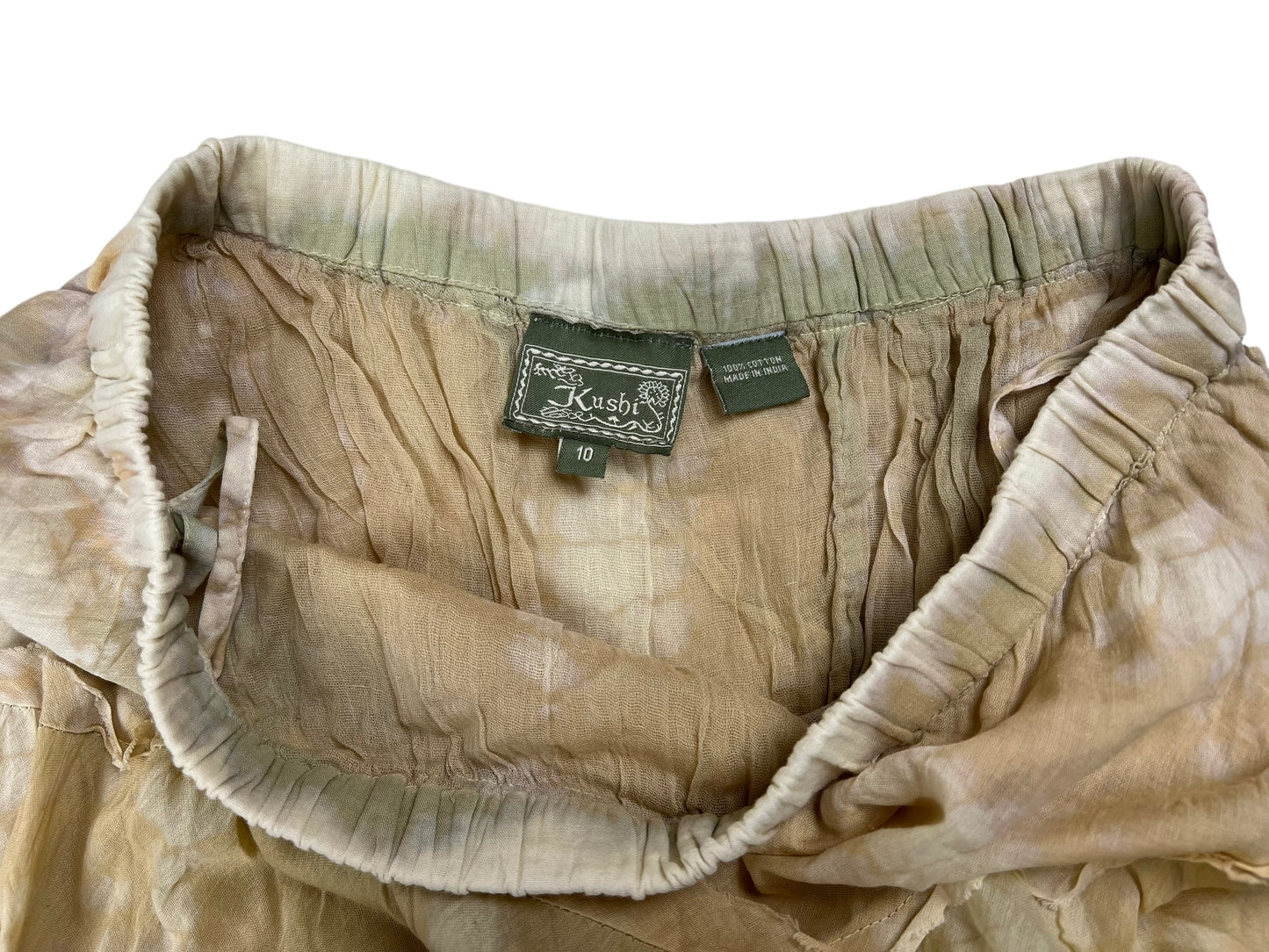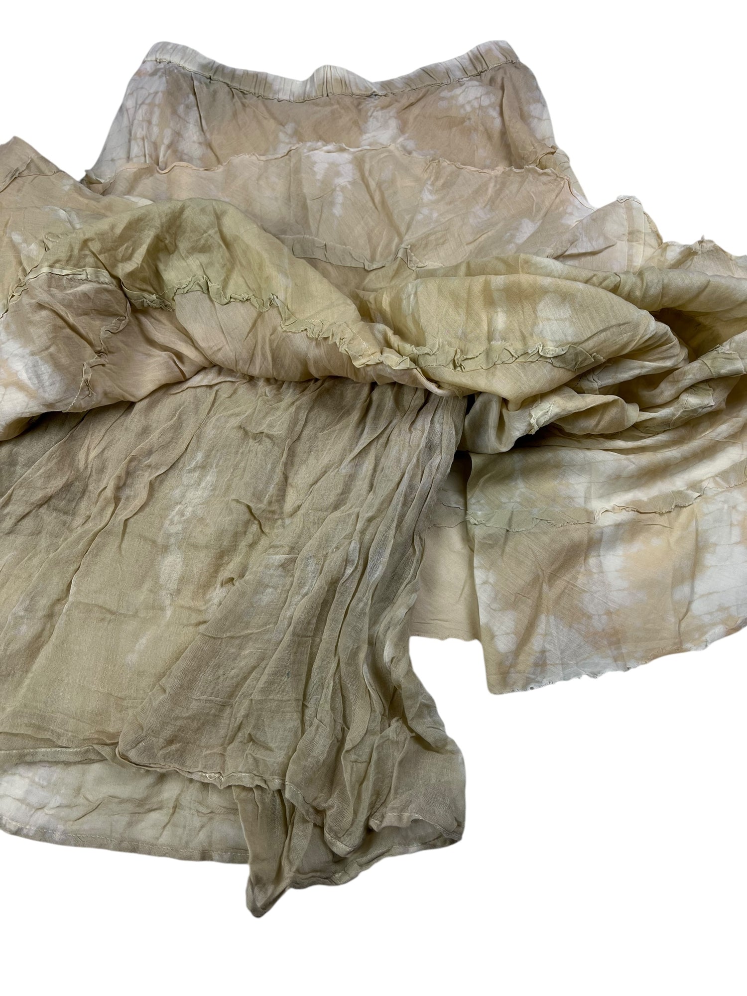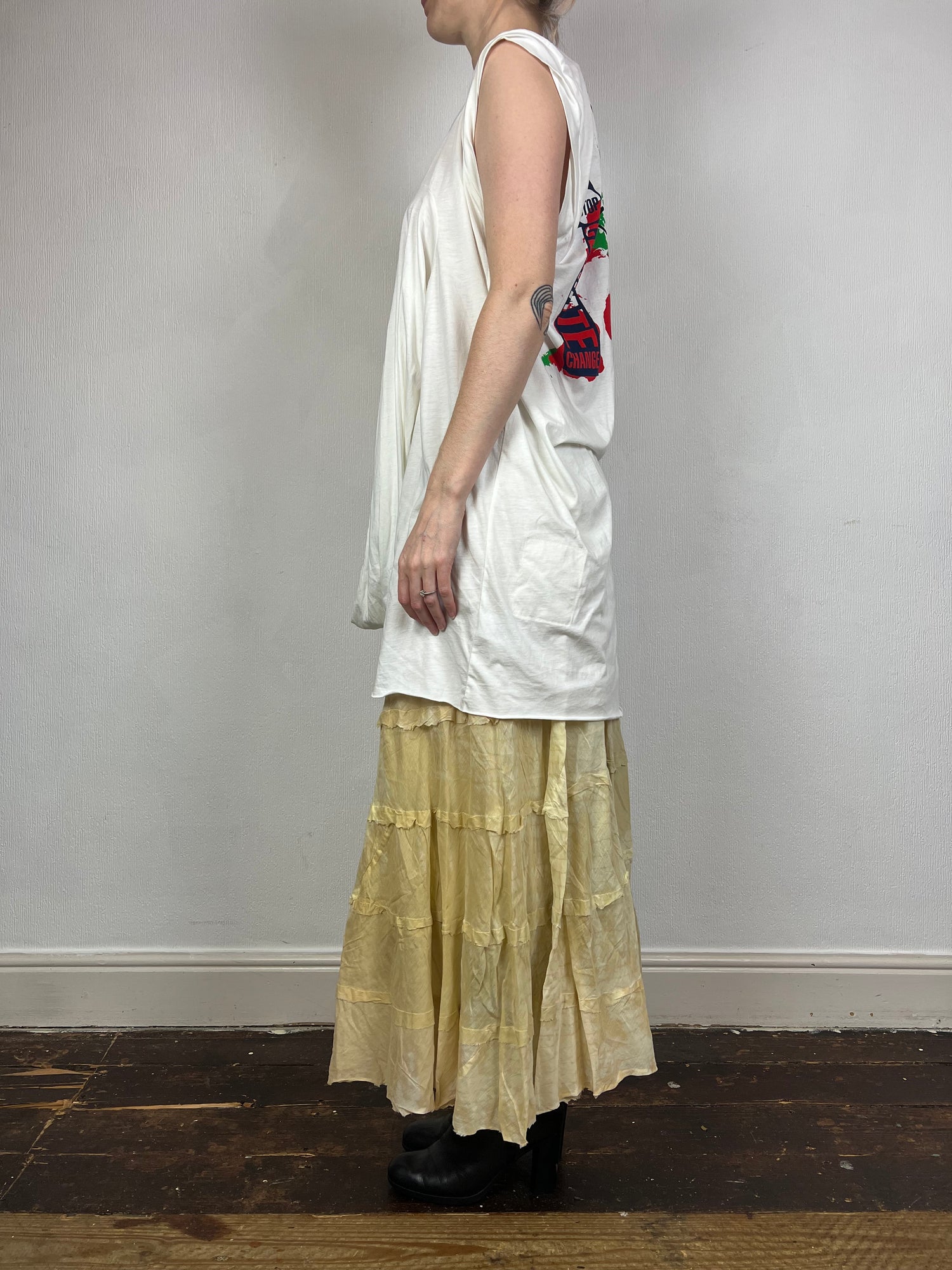 Kushi vintage grunge cottagecore fairy hippy yellow tie dye crinkle maxi skirt. Size S (UK8/10). All details below👇