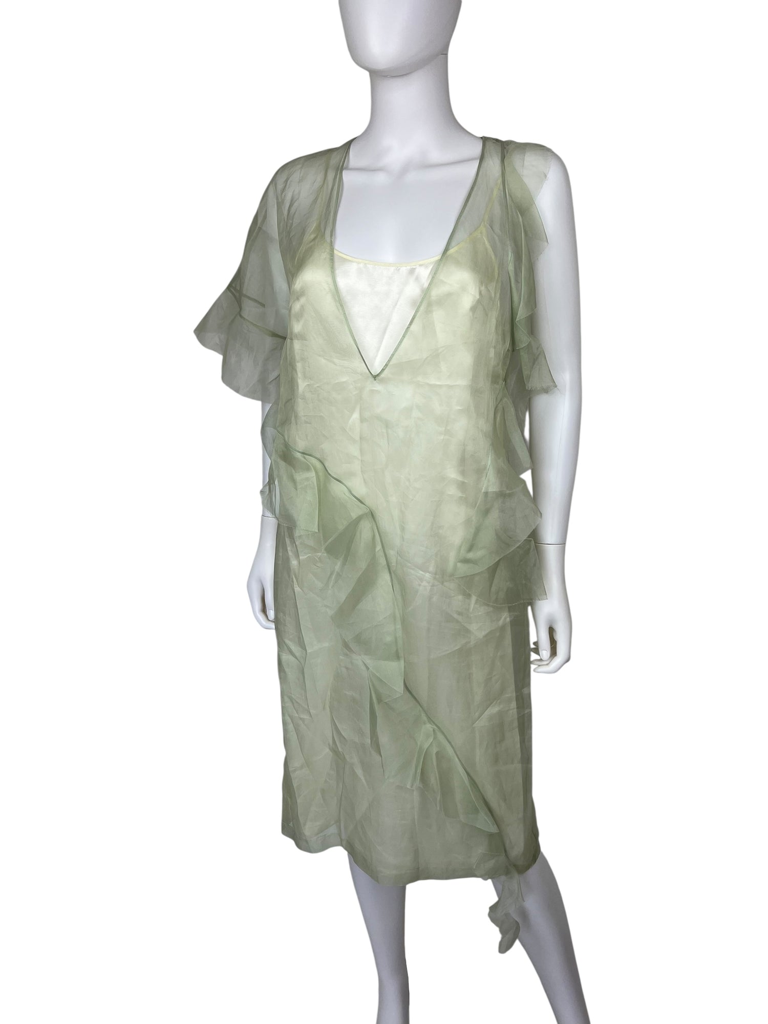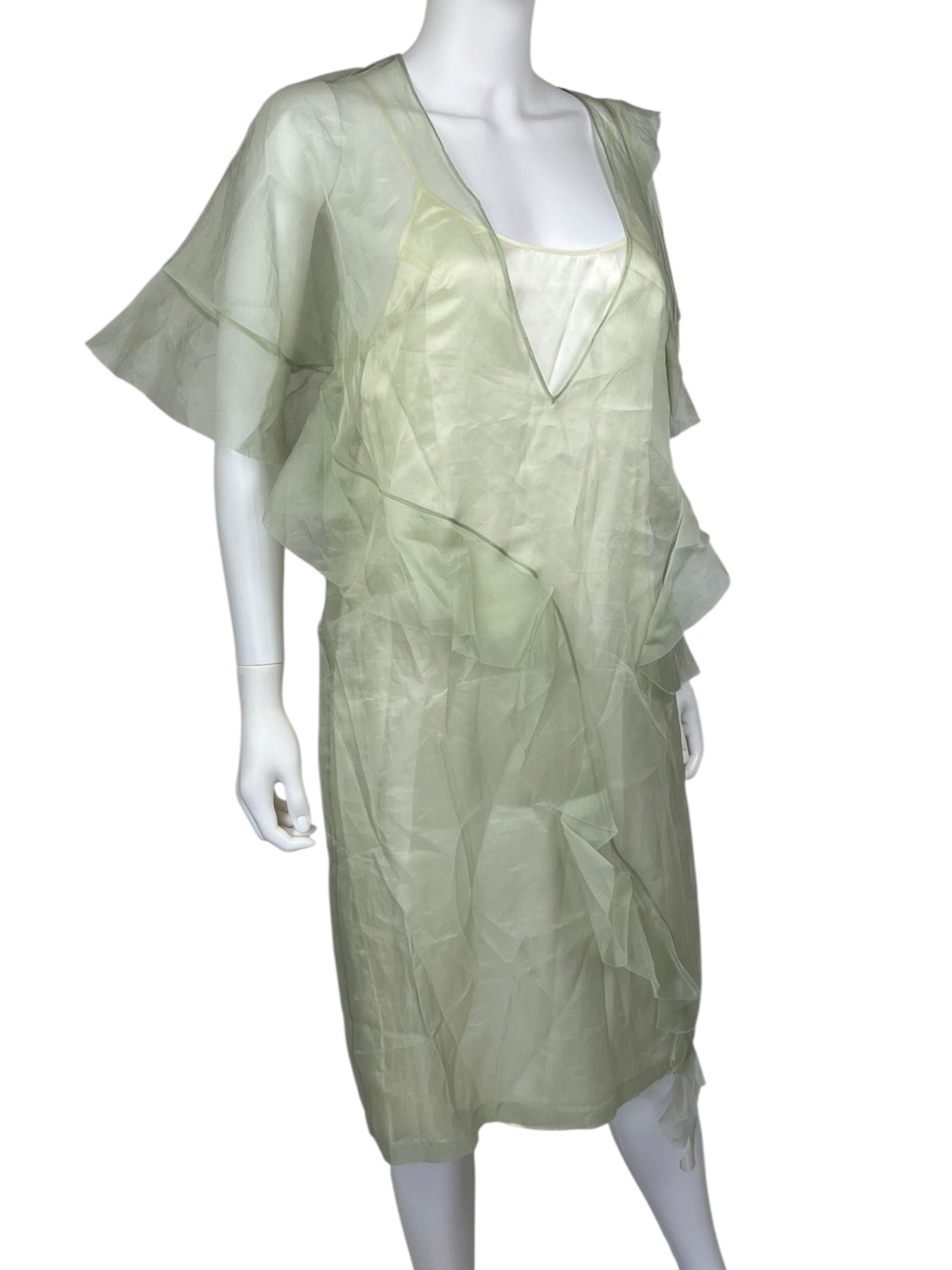 Maison Margiela S/S 2017 green silk sheer ruffle dress. Size XS, UK6/8. All details below👇