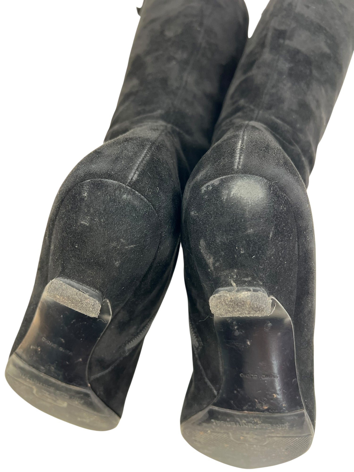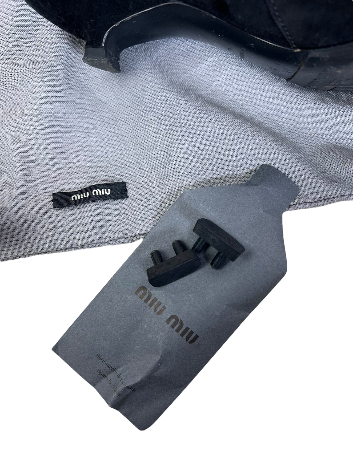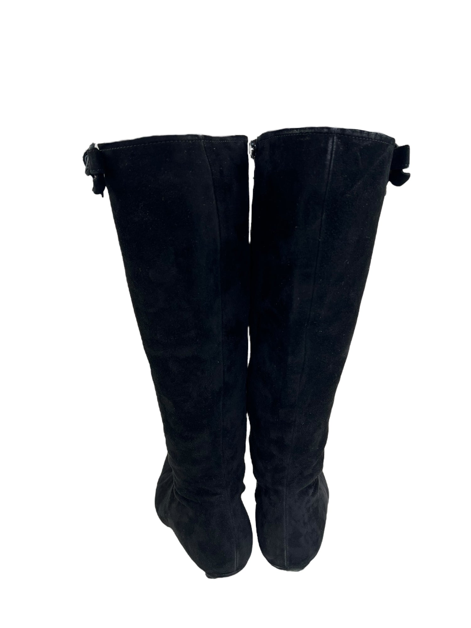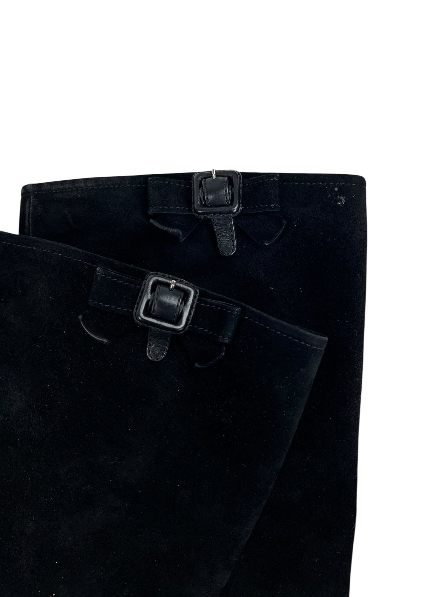 Miu Miu 2000s black suede kitten heel boots with buckled bow details. Size UK4 (EU37/ US6). All details below 👇