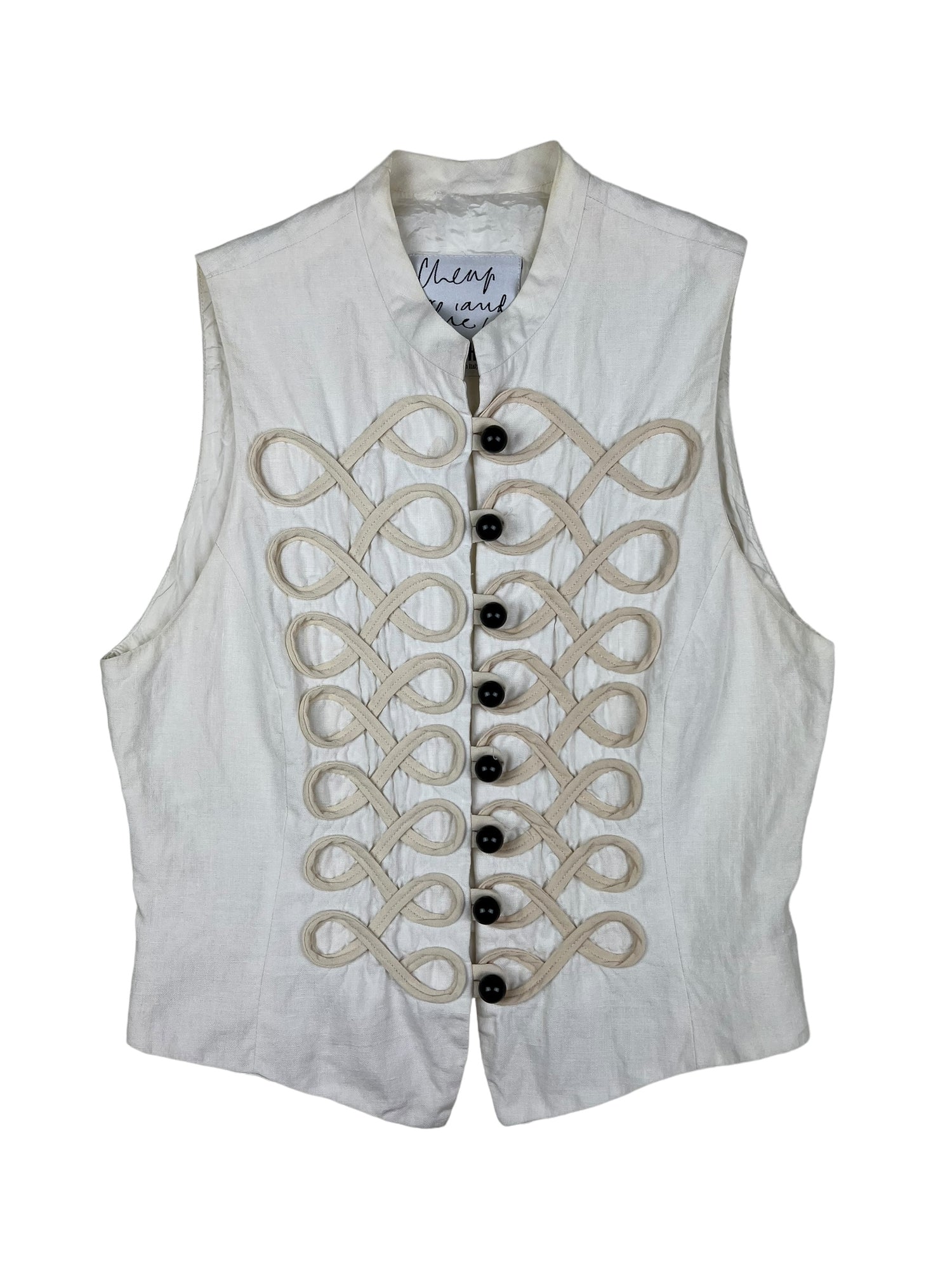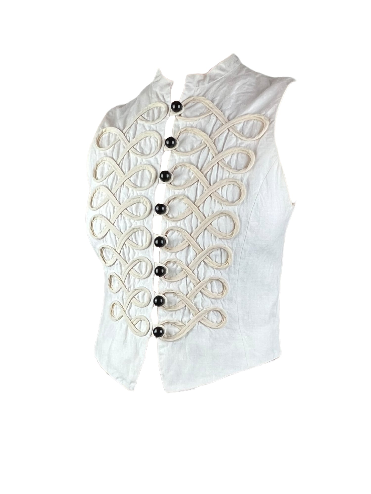 Off white Linen waistcoat military style top. Size UK8 to small UK10 with max 28” waist. All details below👇