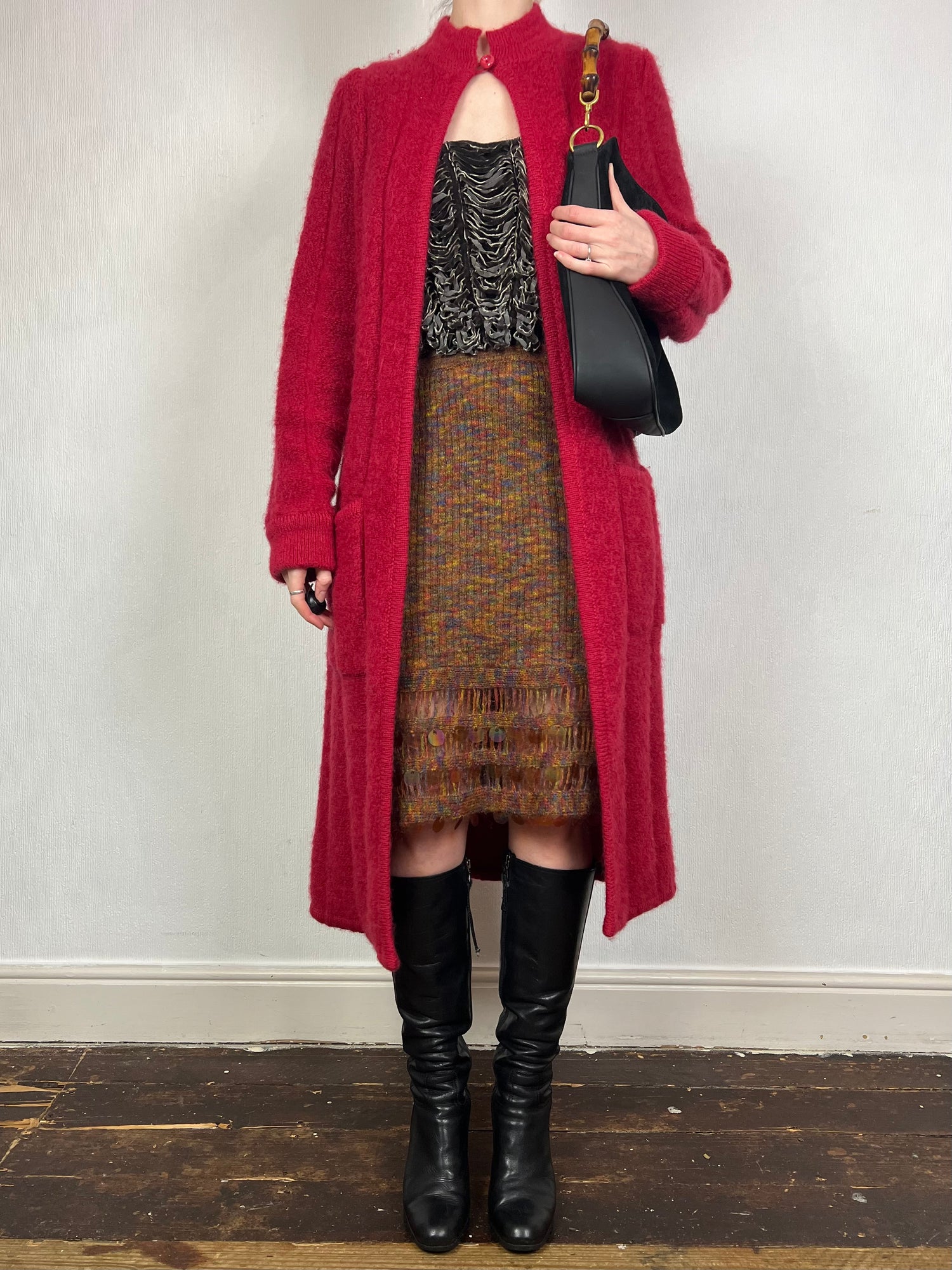Vintage 1980s Red mohair coatigan. Size S (UK8/10). All details below: