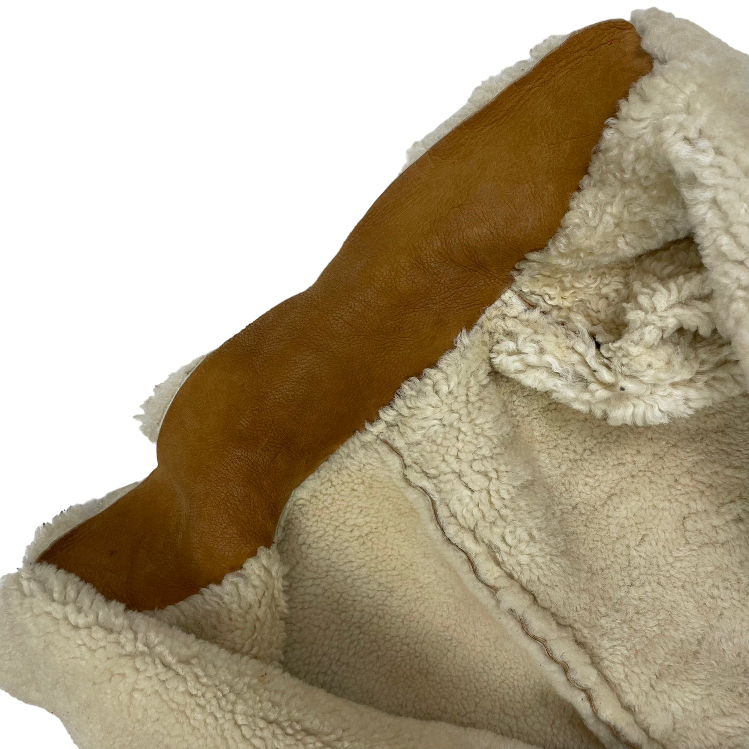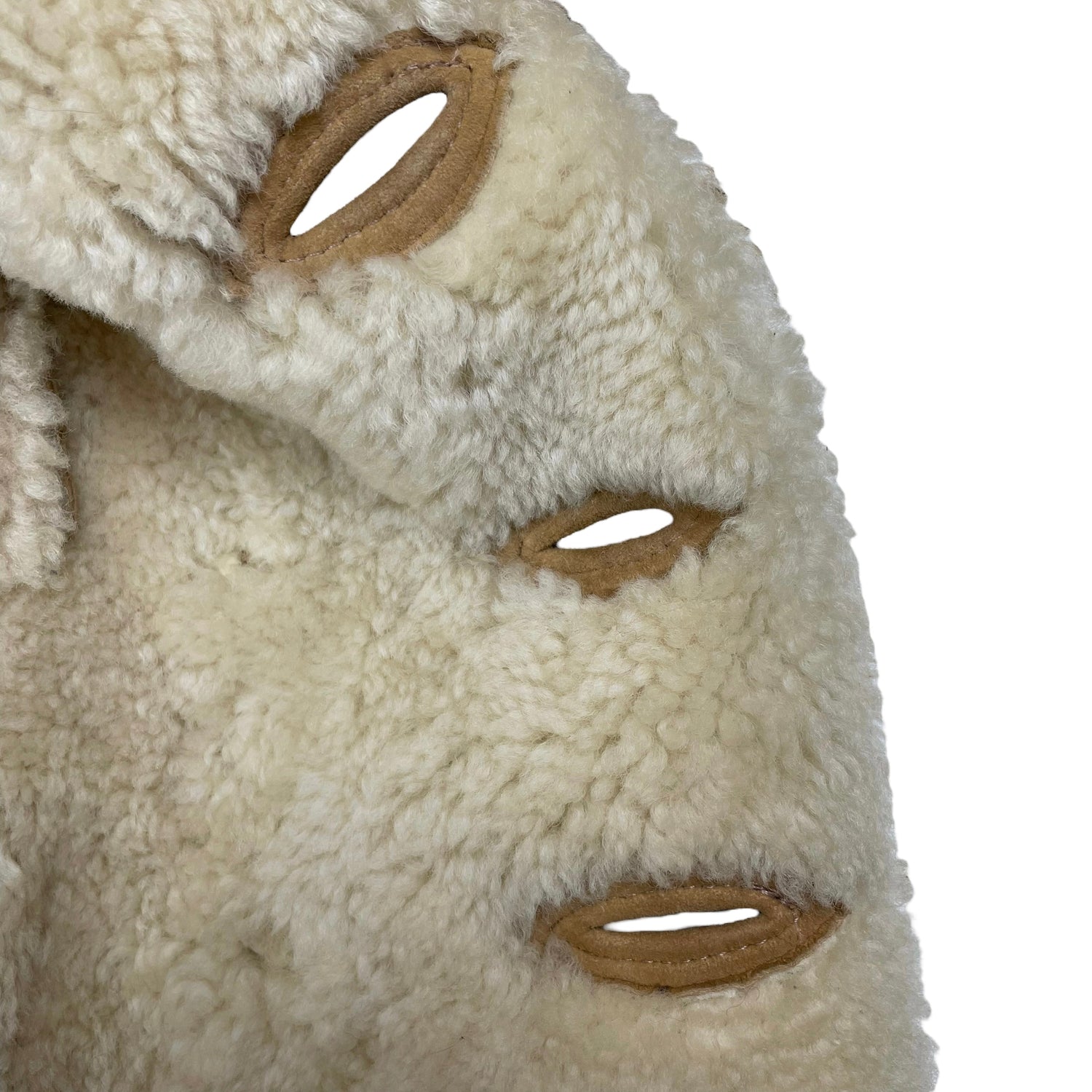 A very rare and well documented archival piece; c.1988 reissue of the iconic AW1982 Nostalgia of Mud shearling jacket that is widely documented online and in museums. Fits UK women’s S/M. This jacket bears a red label which dates it between 1988-1991 (its previous owner purchased around 1990 in a second hand shop in London). It’s identical to the 1982 version. It has animal horn buttons and is in incredible condition, with normal signs of wear.
