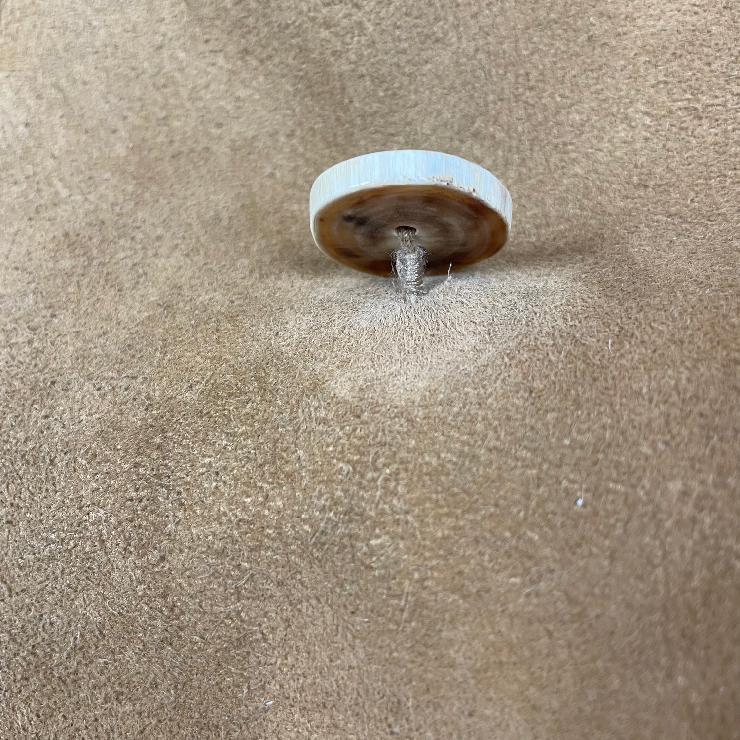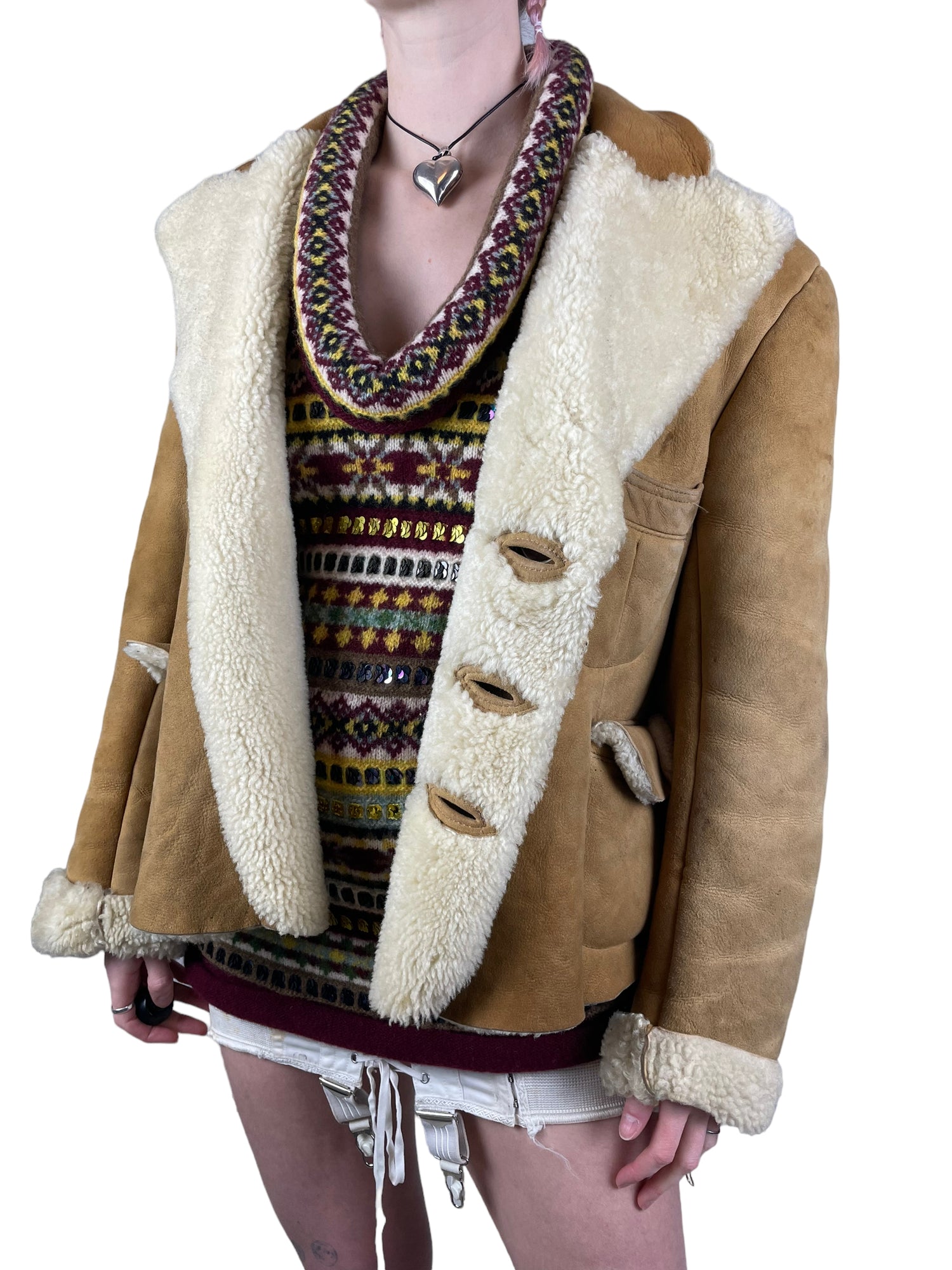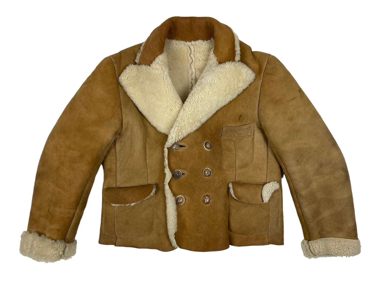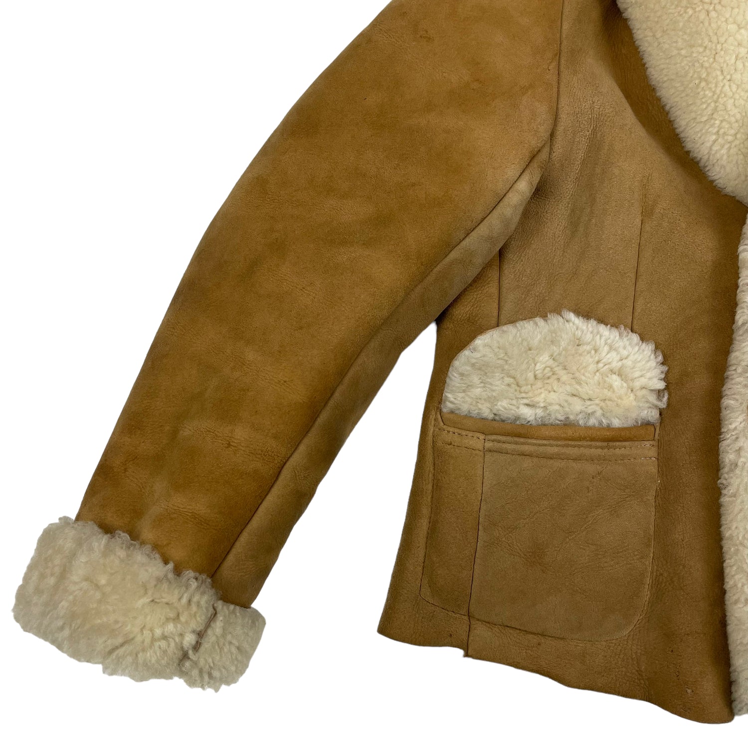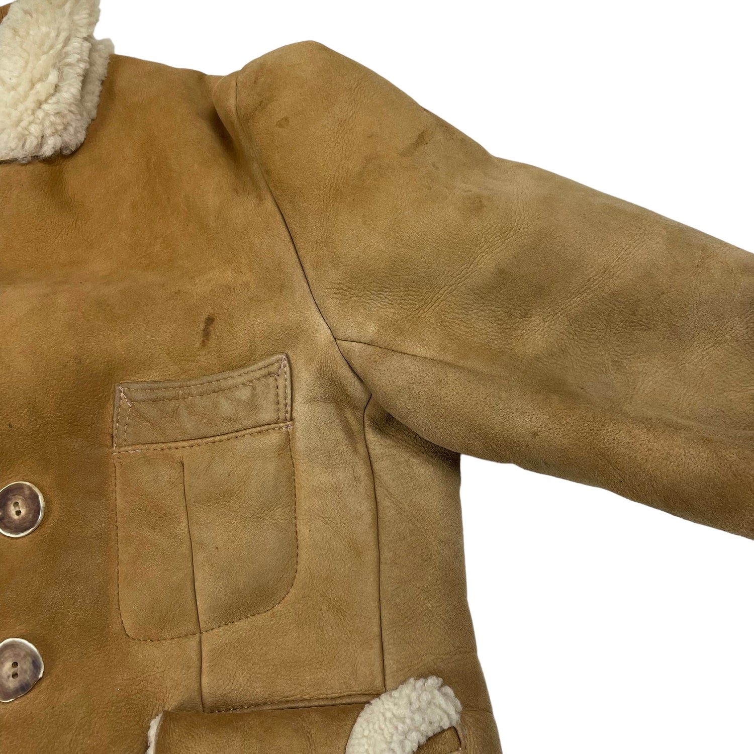 Condition: light marks throughout but no significant stains. No holes, no bad or stale odour. All horn buttons securely fixed and each have a small transparent plastic button attached to the back to secure. 100% sheepskin, specialist dry clean only.