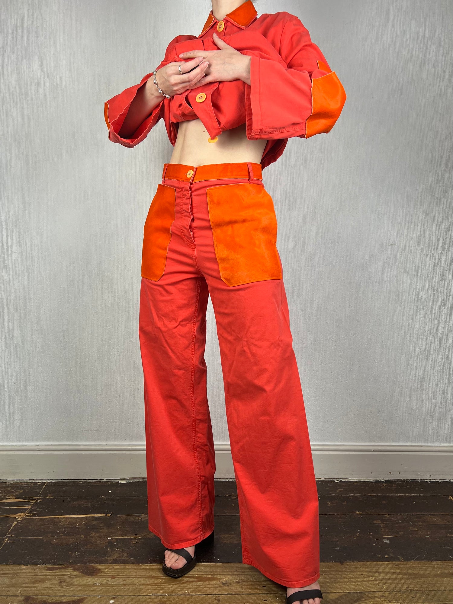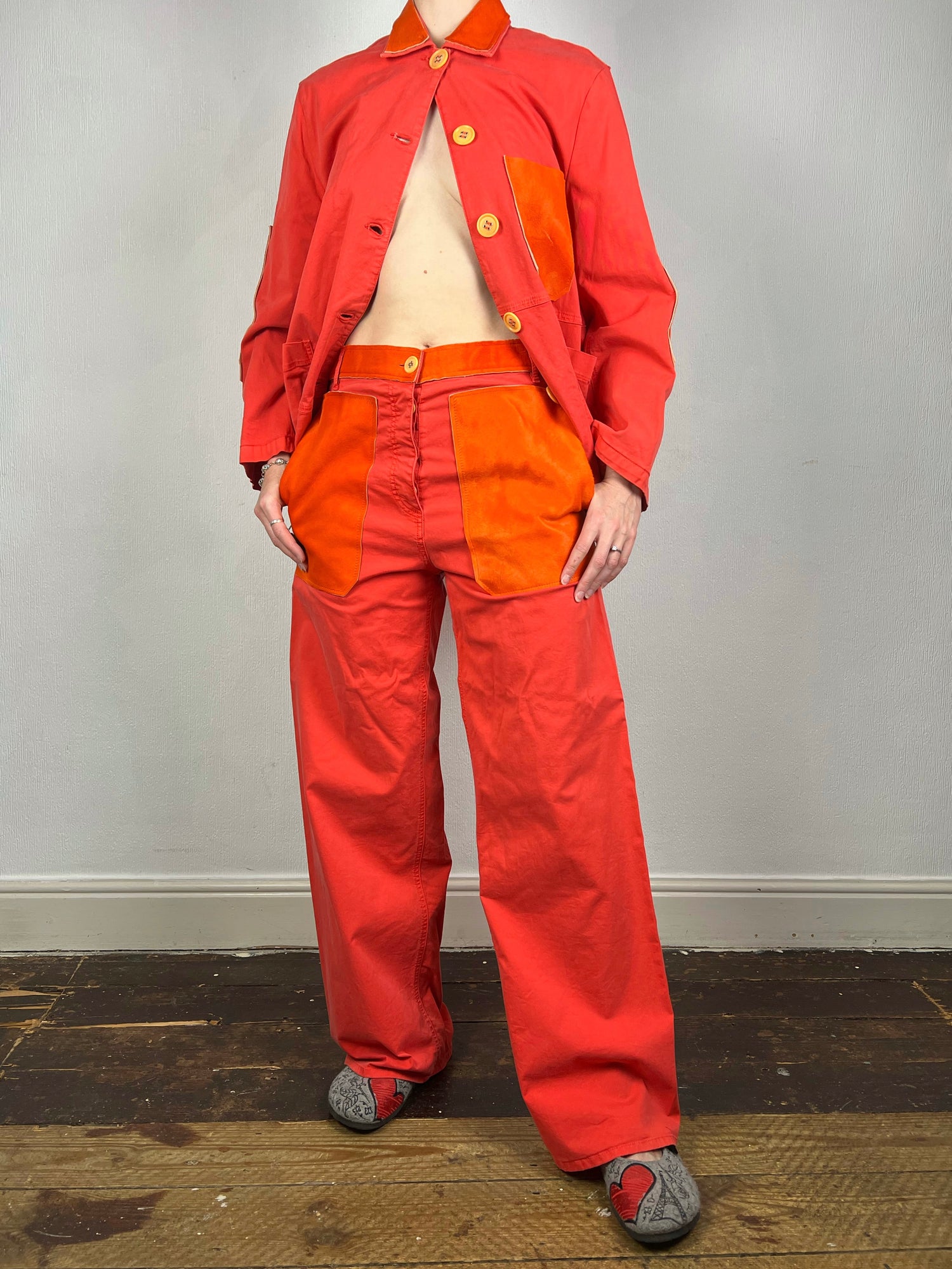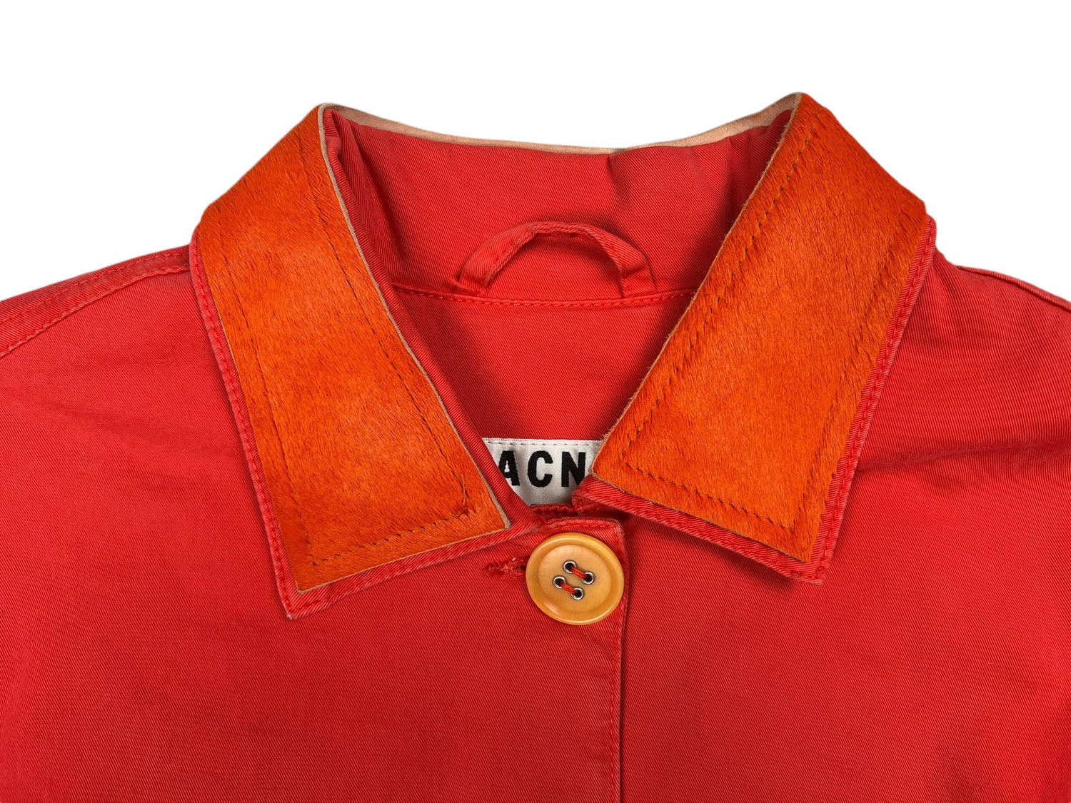 ACNE Studios Resort 2014 ‘Jolie Orange’ shirt/jacket and trouser set with orange horse hair details. Size UK10. All details below: