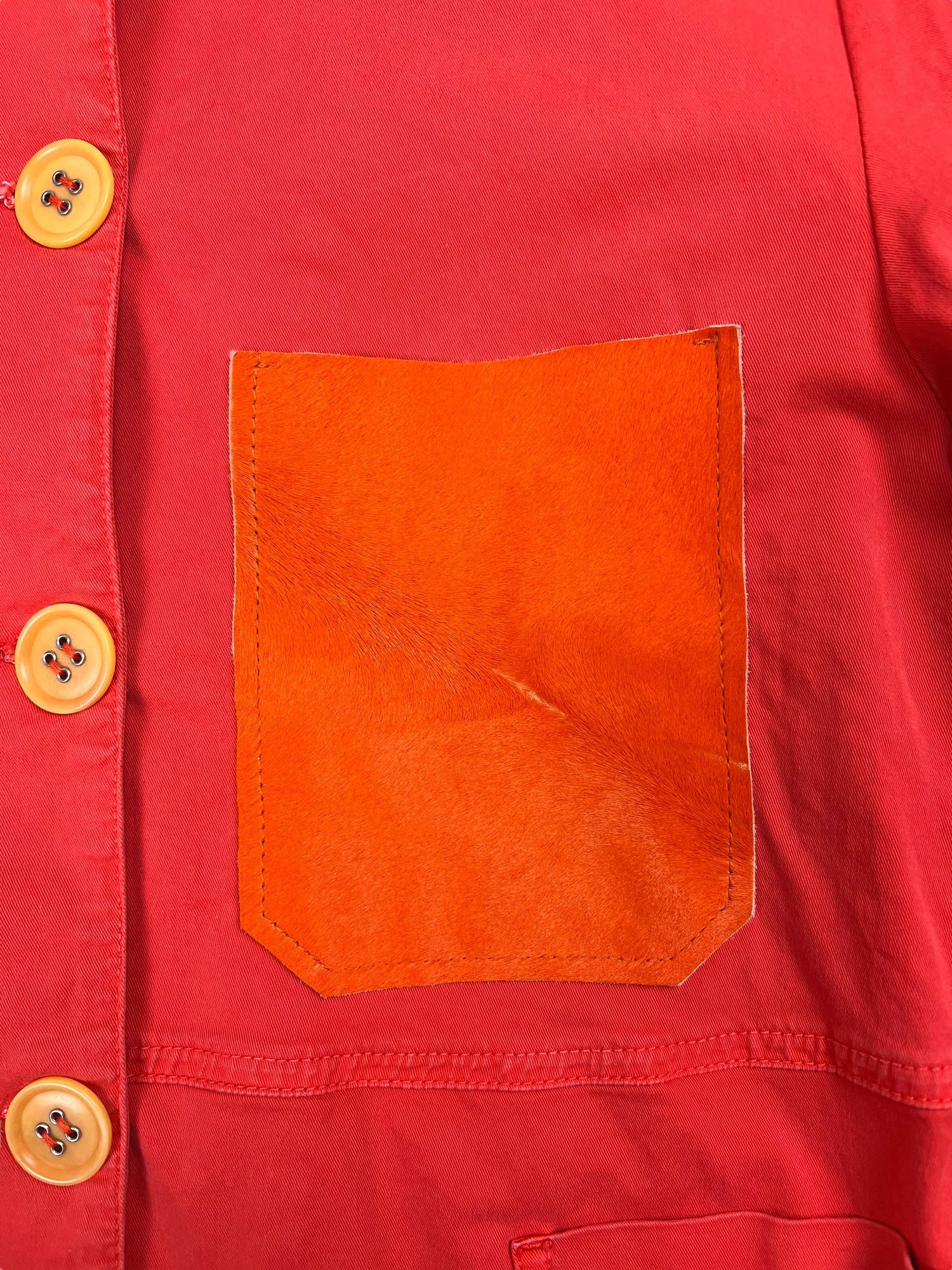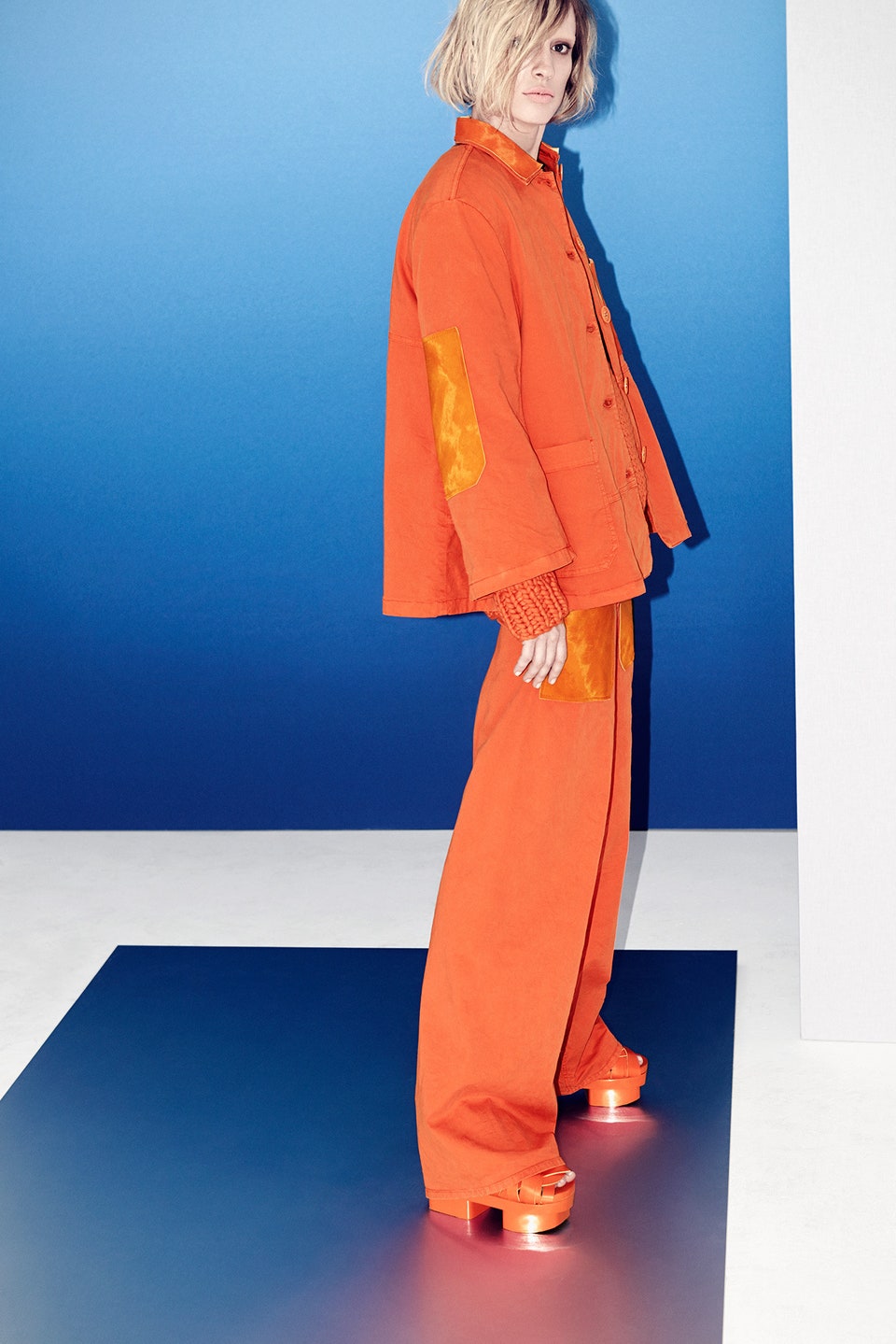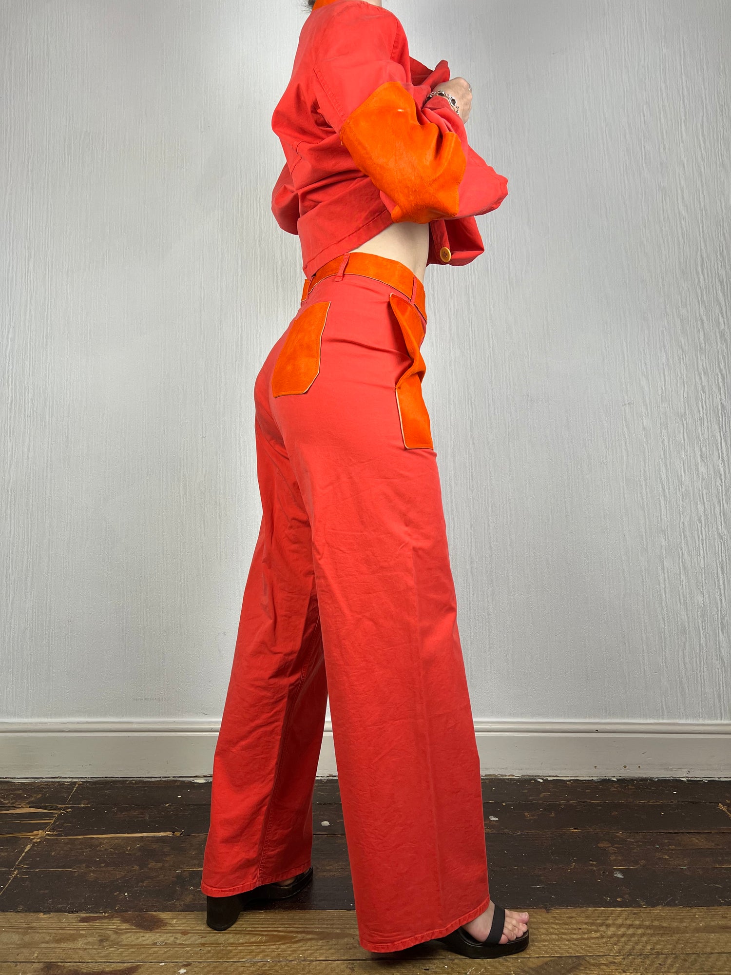 ACNE Studios Resort 2014 ‘Jolie Orange’ shirt/jacket and trouser set with orange horse hair details. Size UK10. All details below: