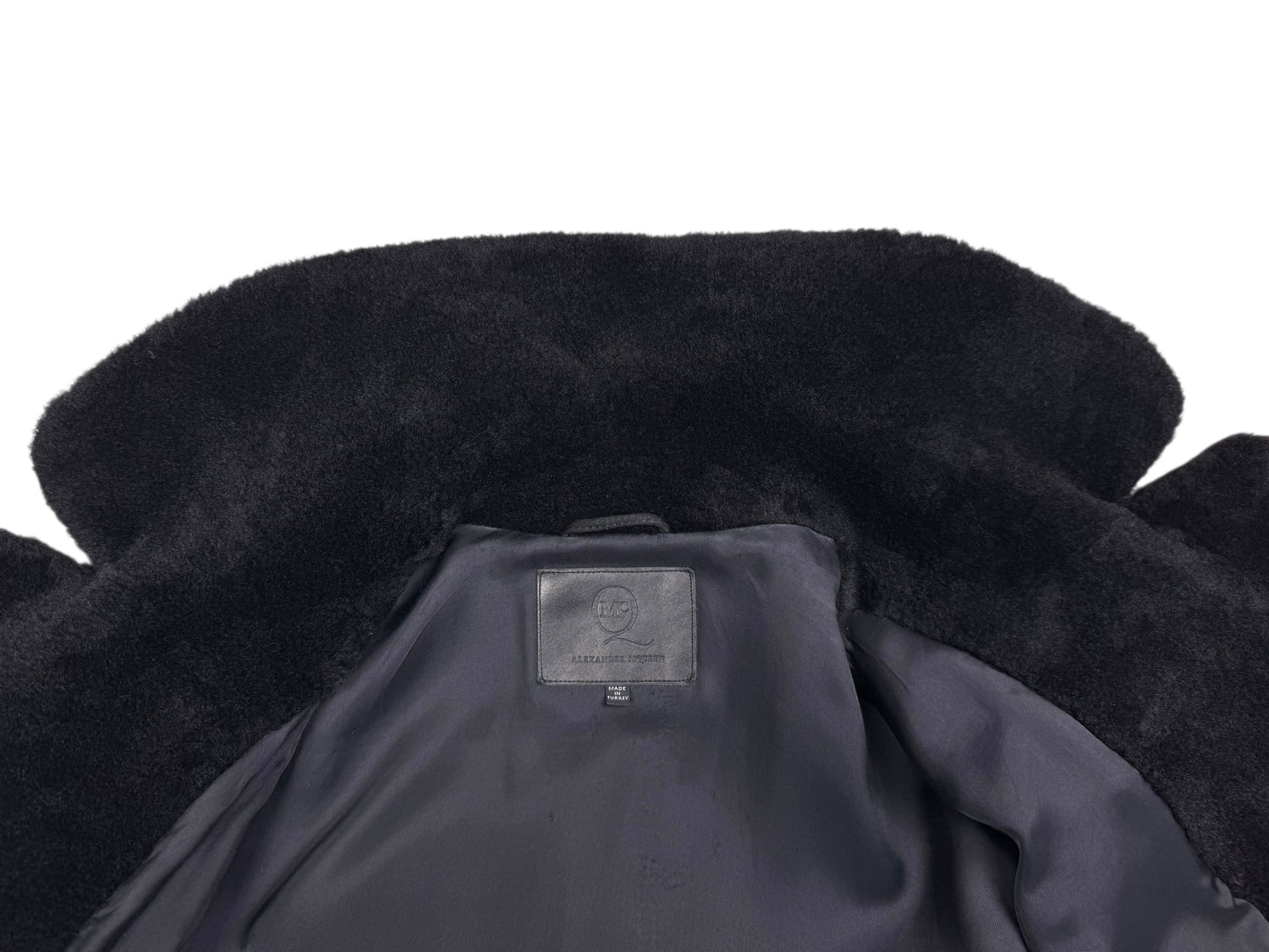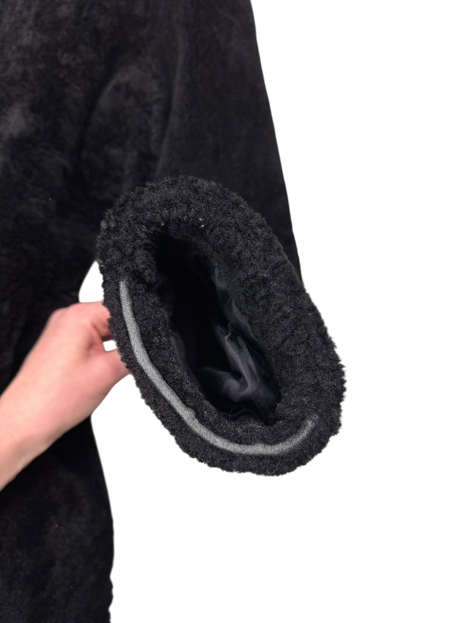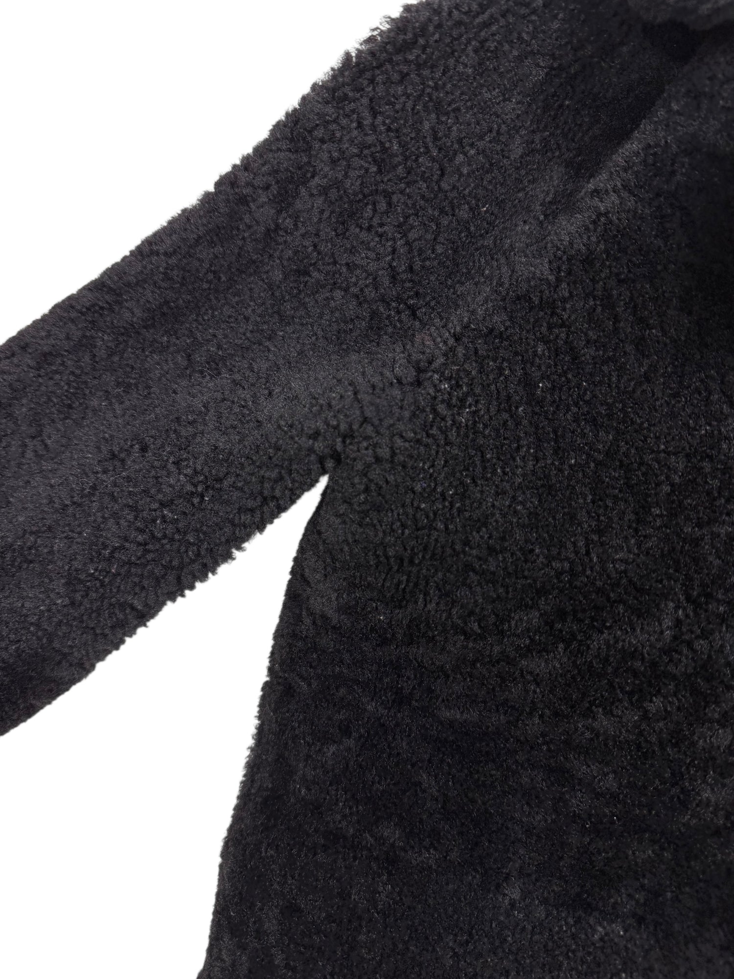 Alexander McQueen F/W 2012 Menswear black shearling coat. Unisex S (UK8/10) women’s or XS men’s. Boxy shape. The nap on the front lower half has a very subtle almost wood grain pattern on it. All details below👇