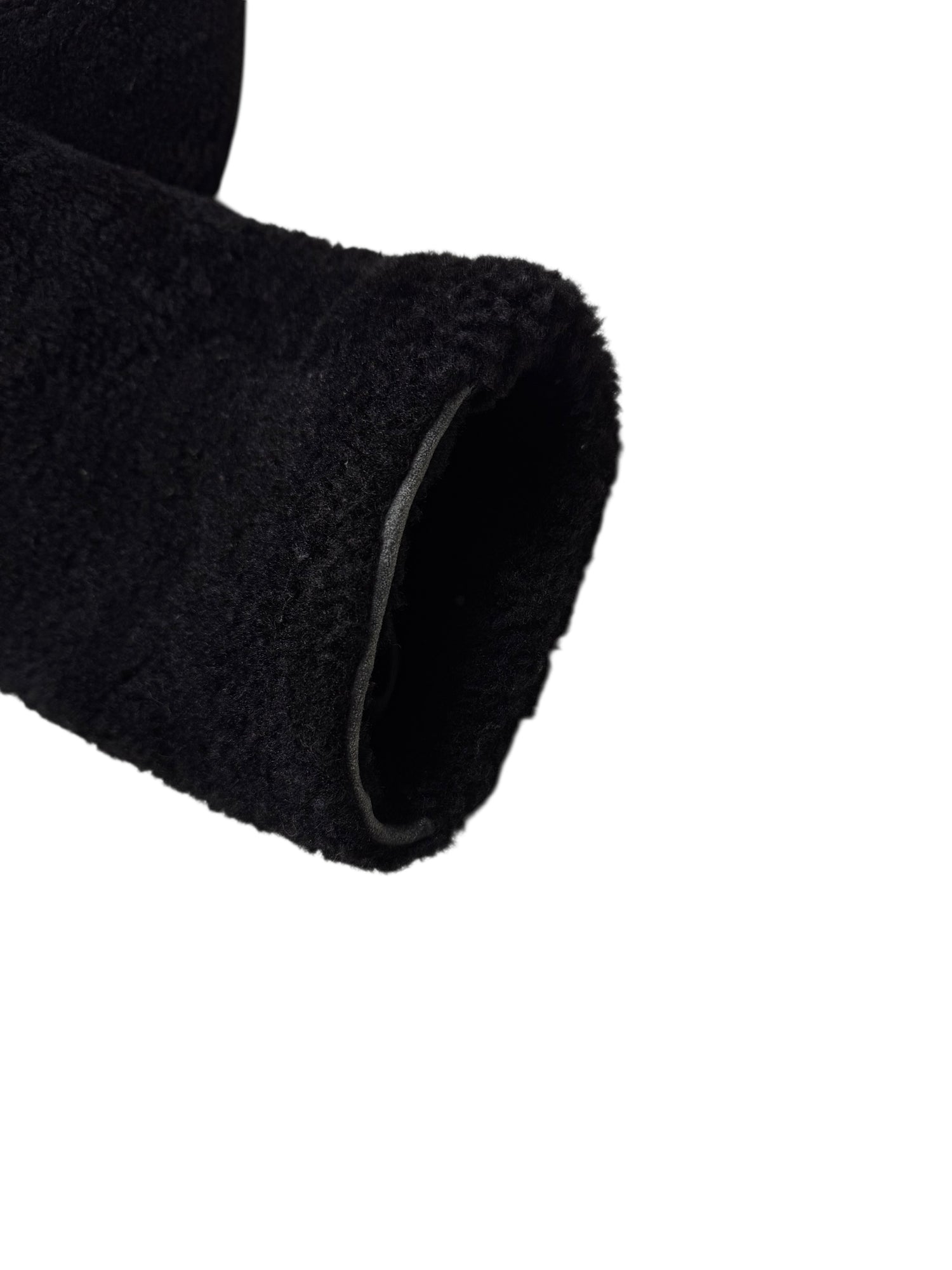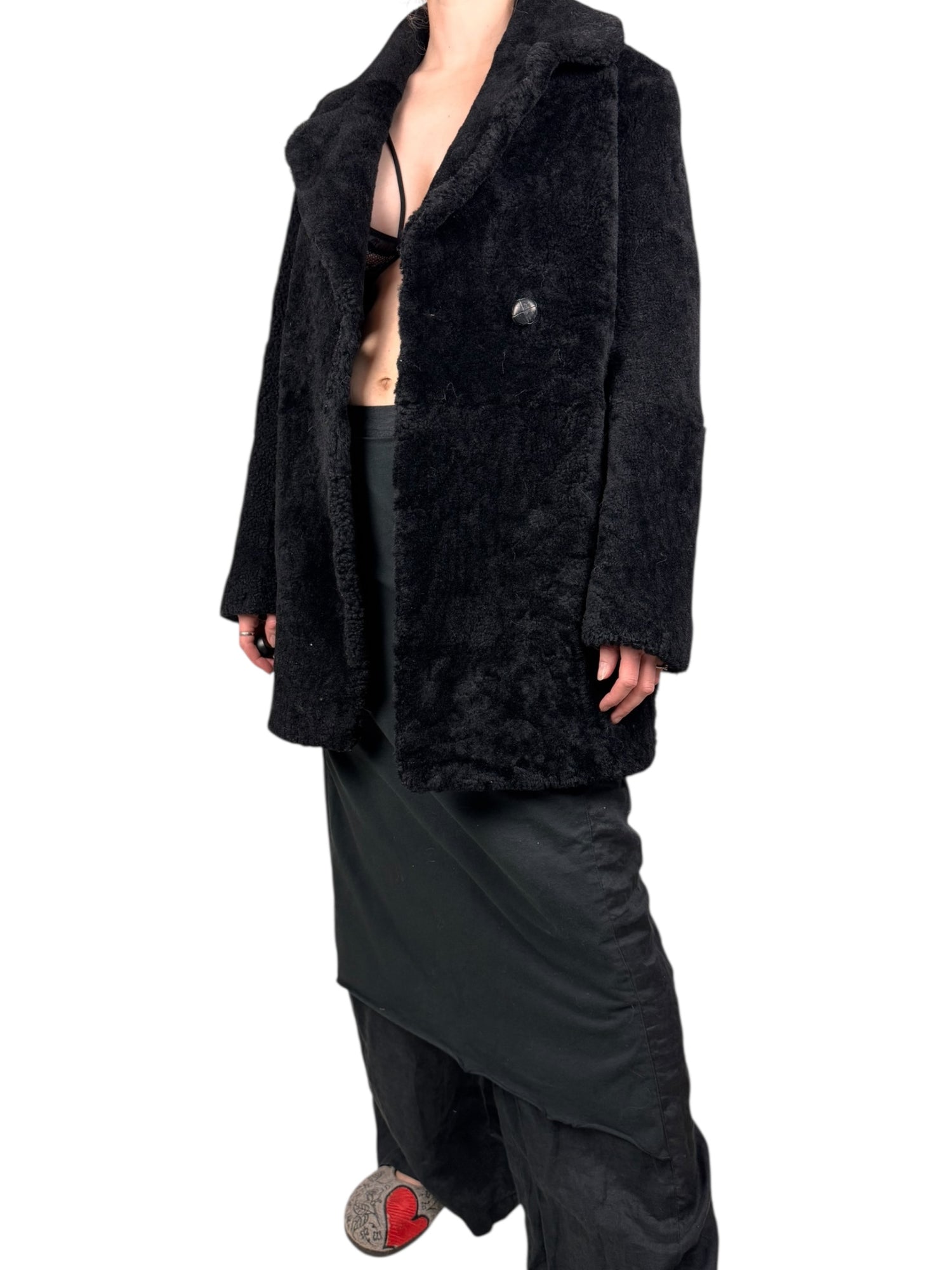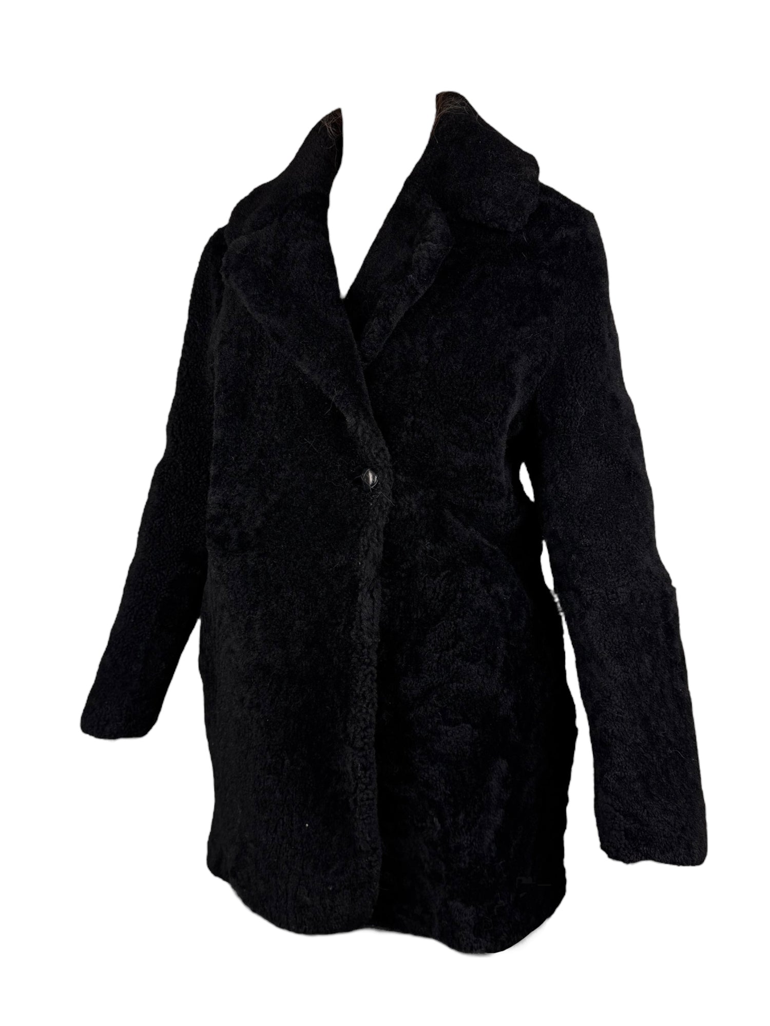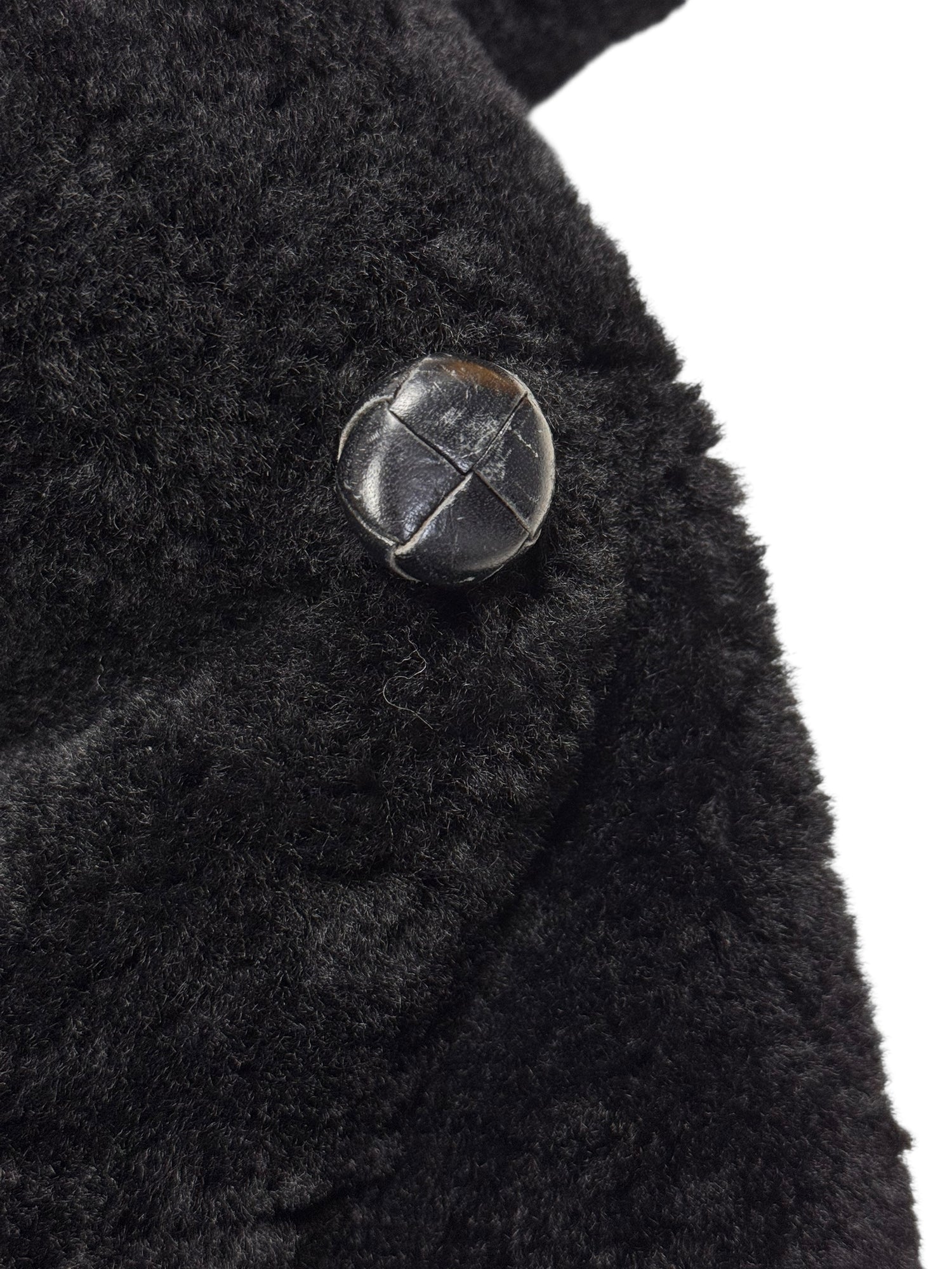 Alexander McQueen F/W 2012 Menswear black shearling coat. Unisex S (UK8/10) women’s or XS men’s. Boxy shape. The nap on the front lower half has a very subtle almost wood grain pattern on it. All details below👇