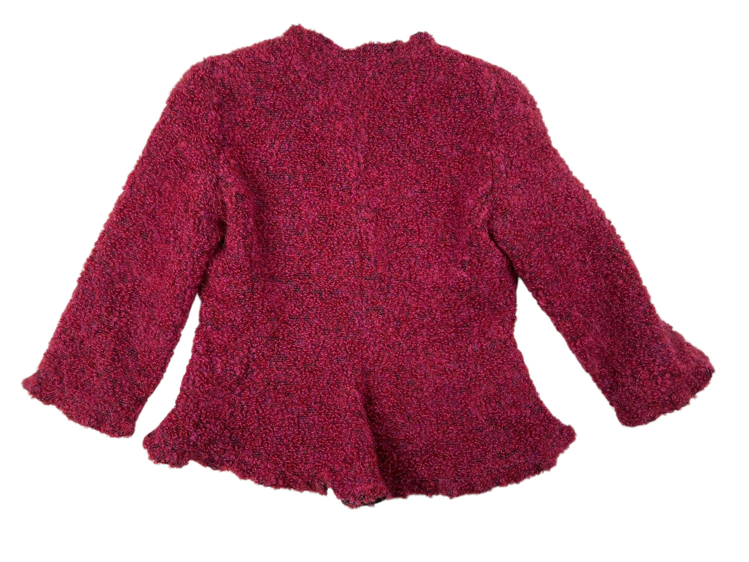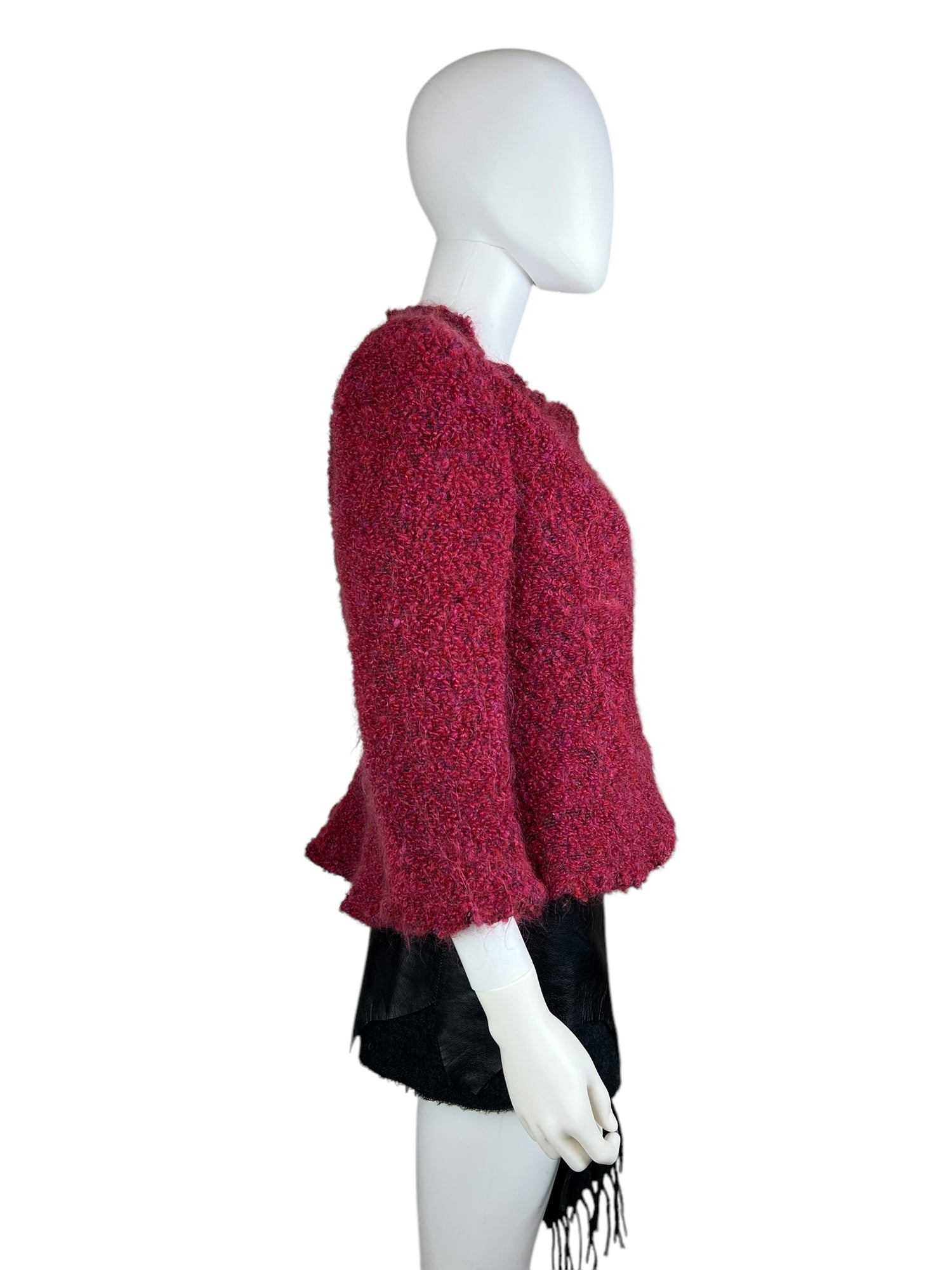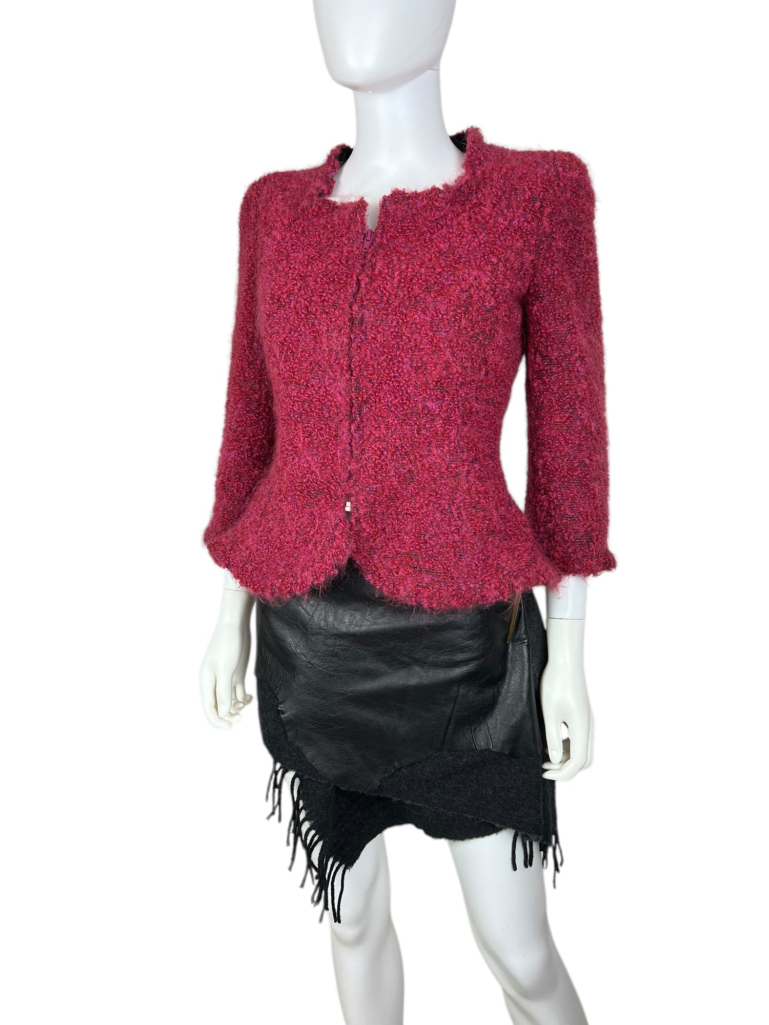 Vintage 2003 Armani Collezioni mohair wool blend boucle cherry magenta red jacket with peplum style cut. Size S/M (UK8/10/12 depending on desired fit). All details below👇