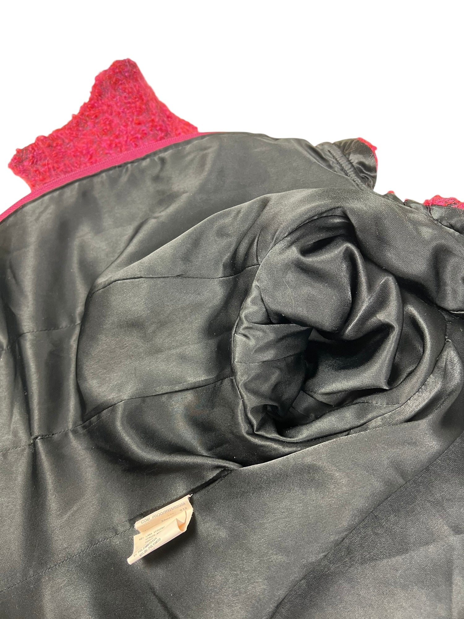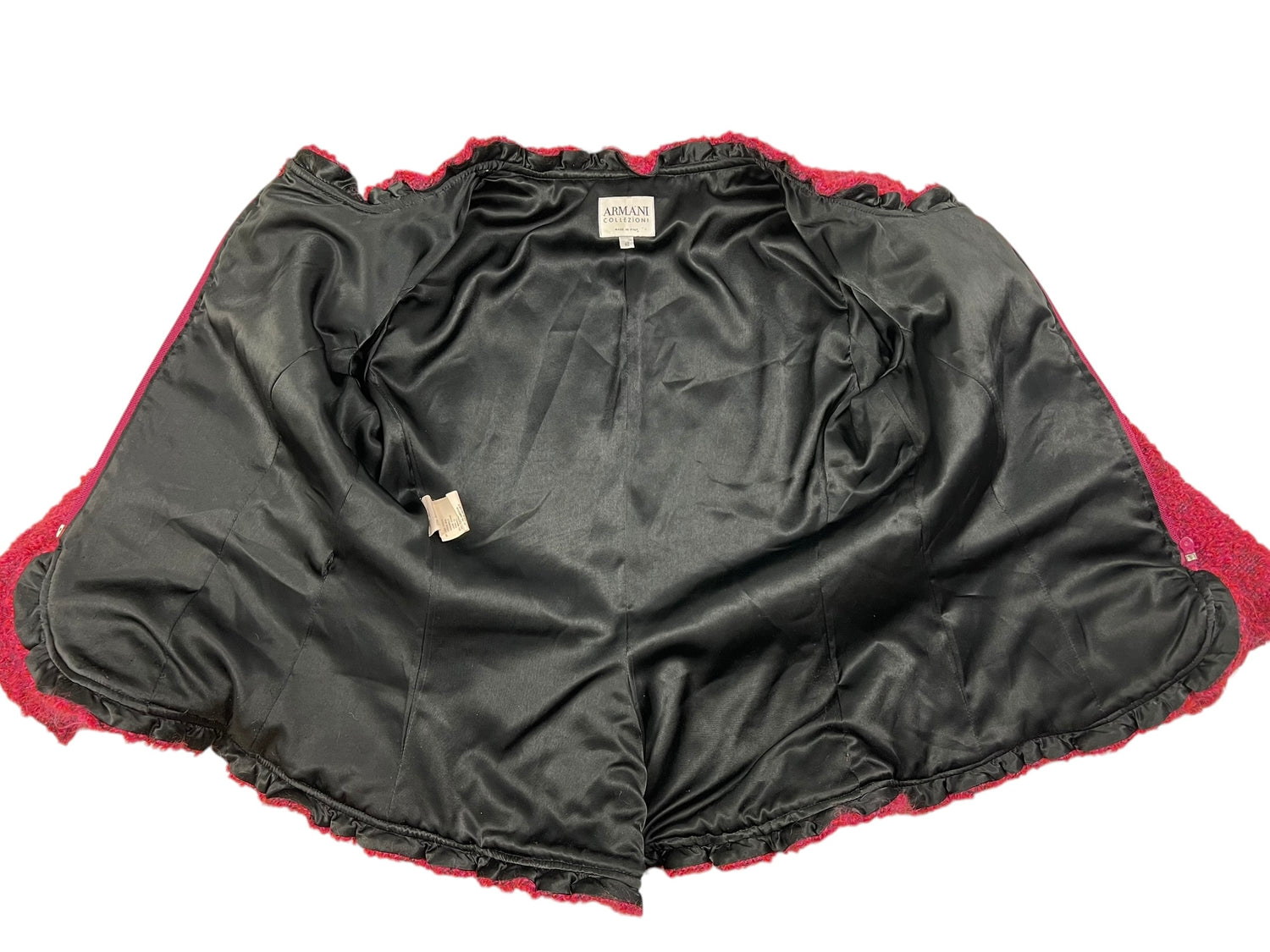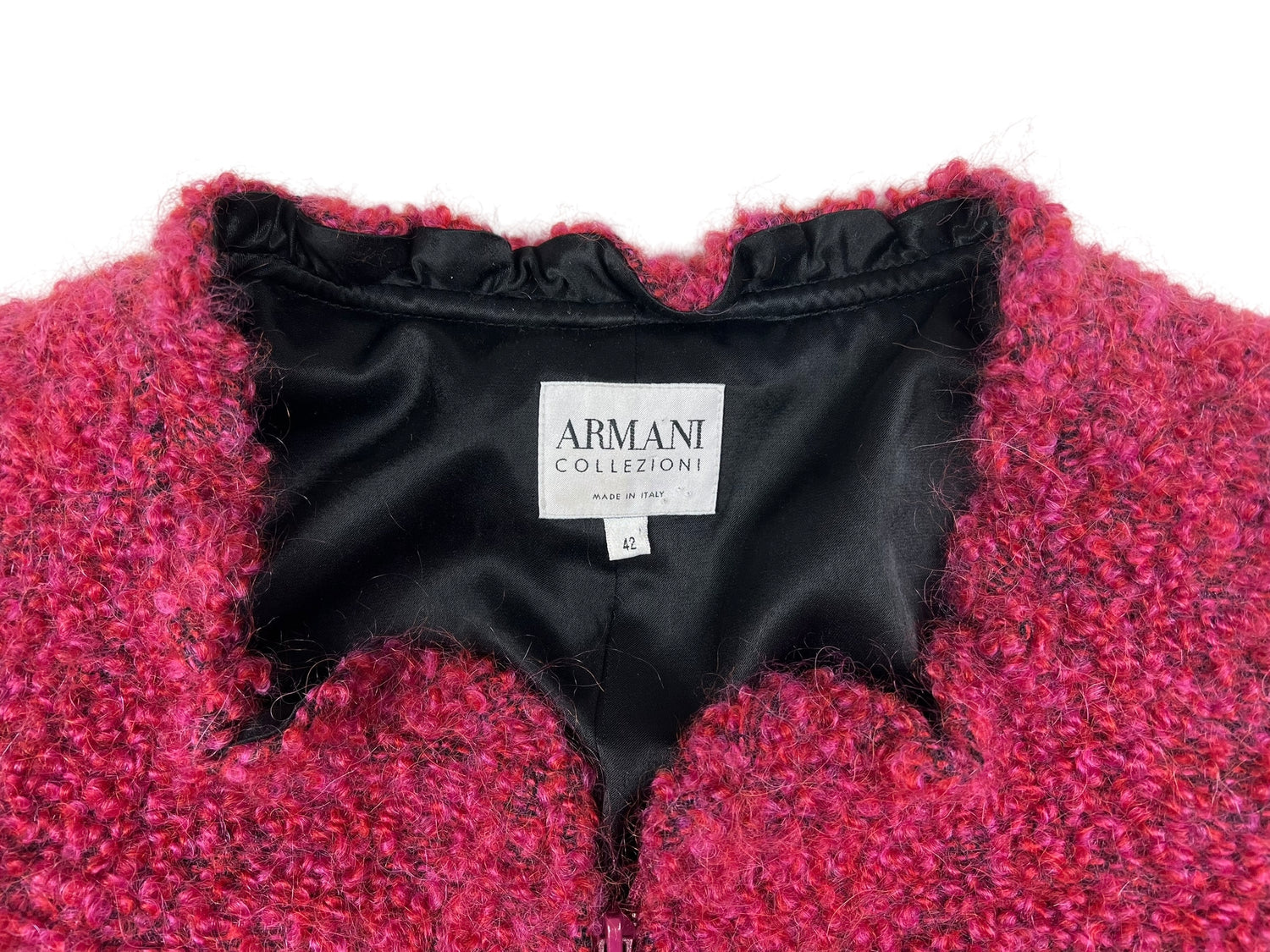 Vintage 2003 Armani Collezioni mohair wool blend boucle cherry magenta red jacket with peplum style cut. Size S/M (UK8/10/12 depending on desired fit). All details below👇