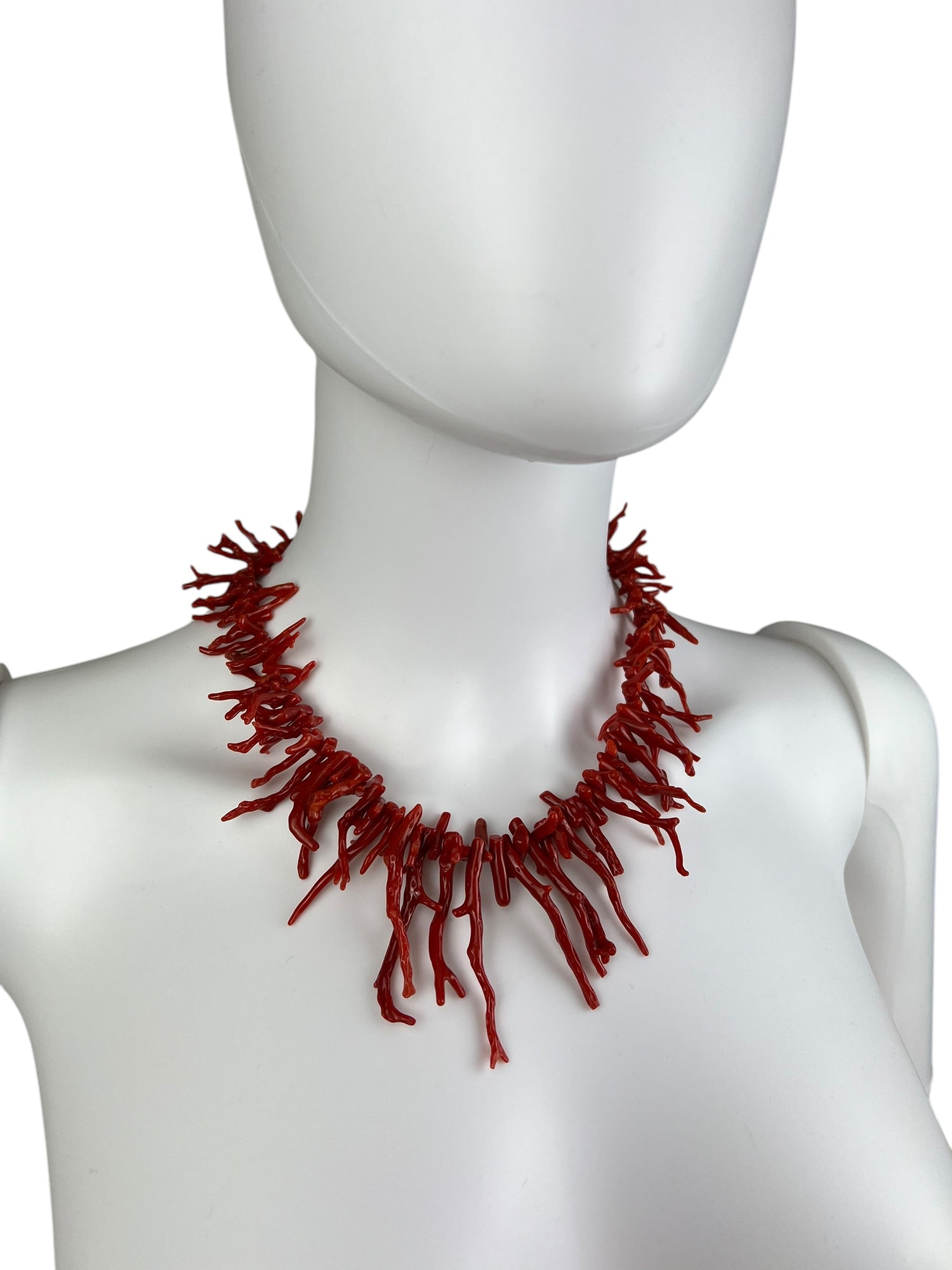 Antique red branched coral necklace (real coral) with stone set clasp.