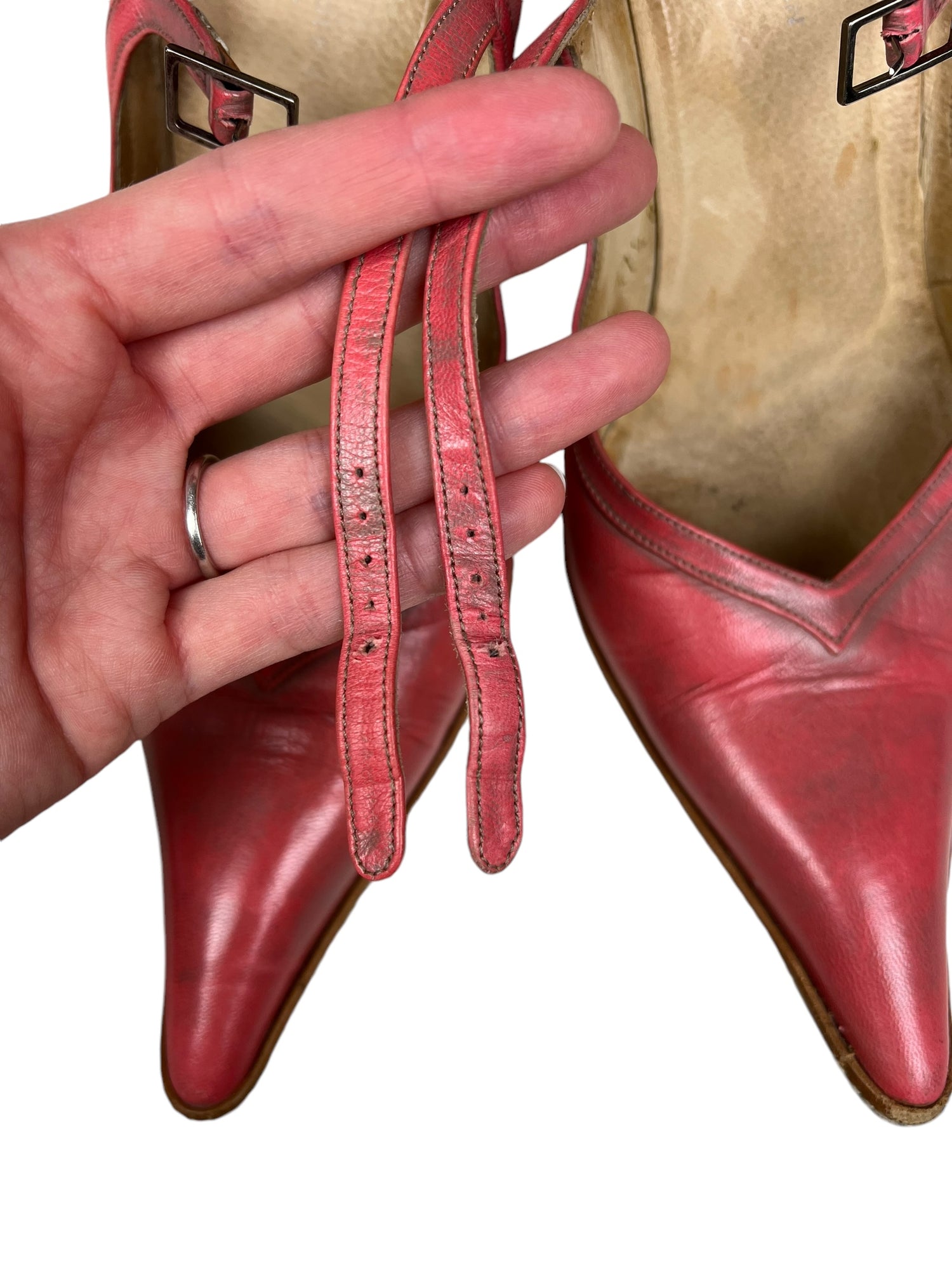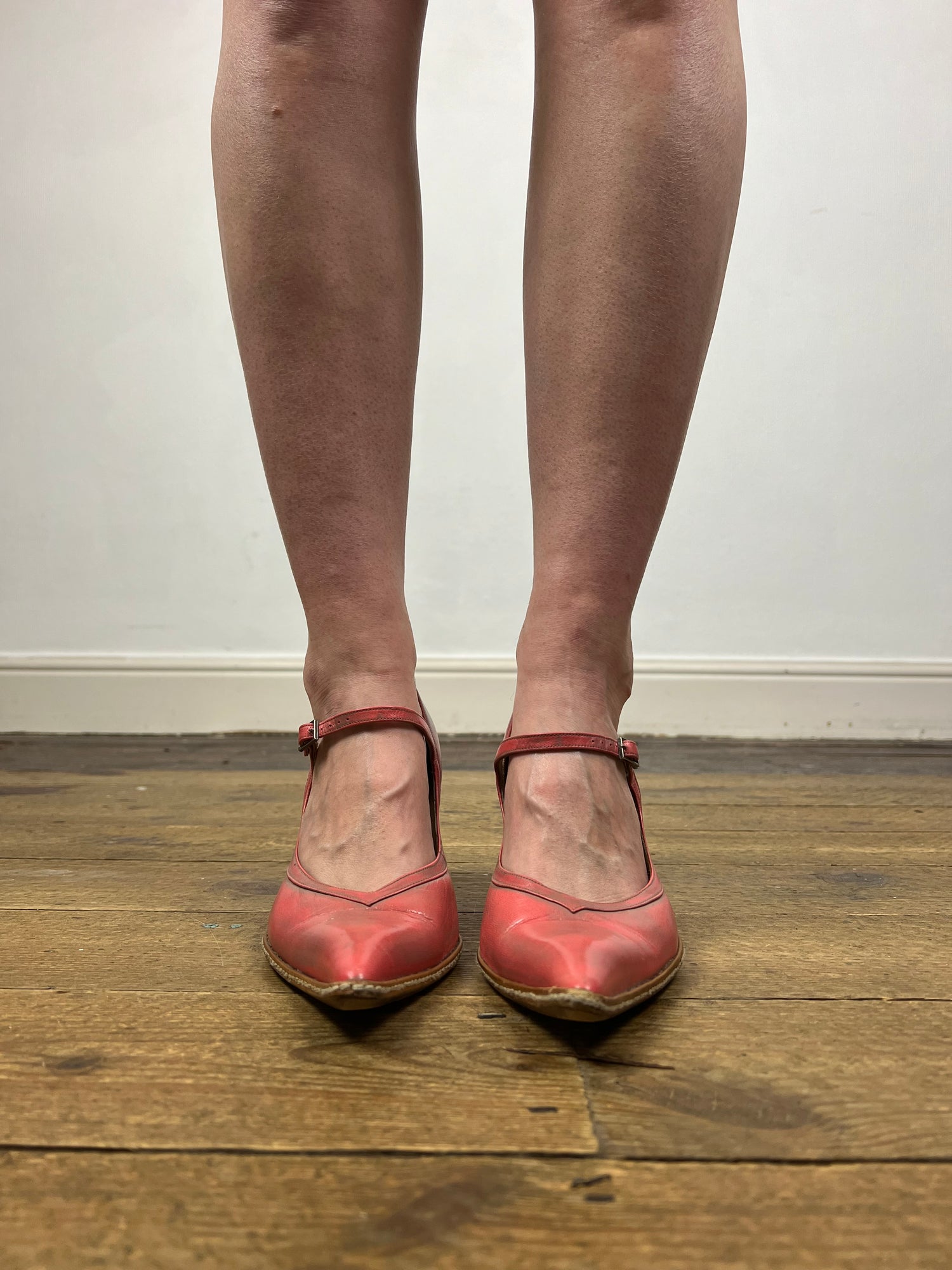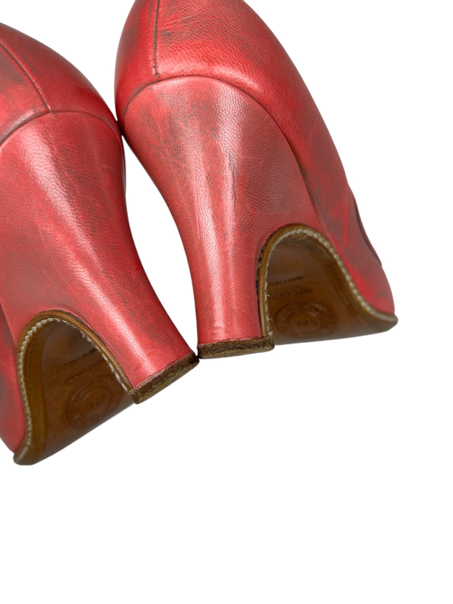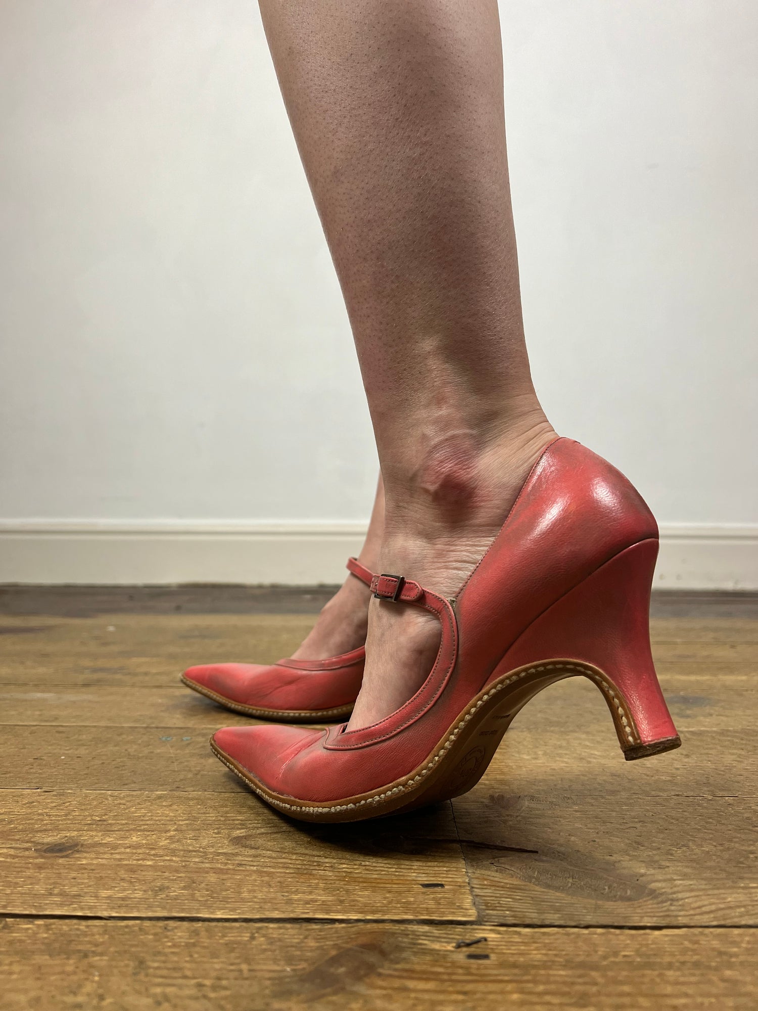 Dries van Noten S/S 2002 kitten heels. Size UK4.5 (EU37.5 / US6.5). Coral pink colour with an aged finished. All details below: