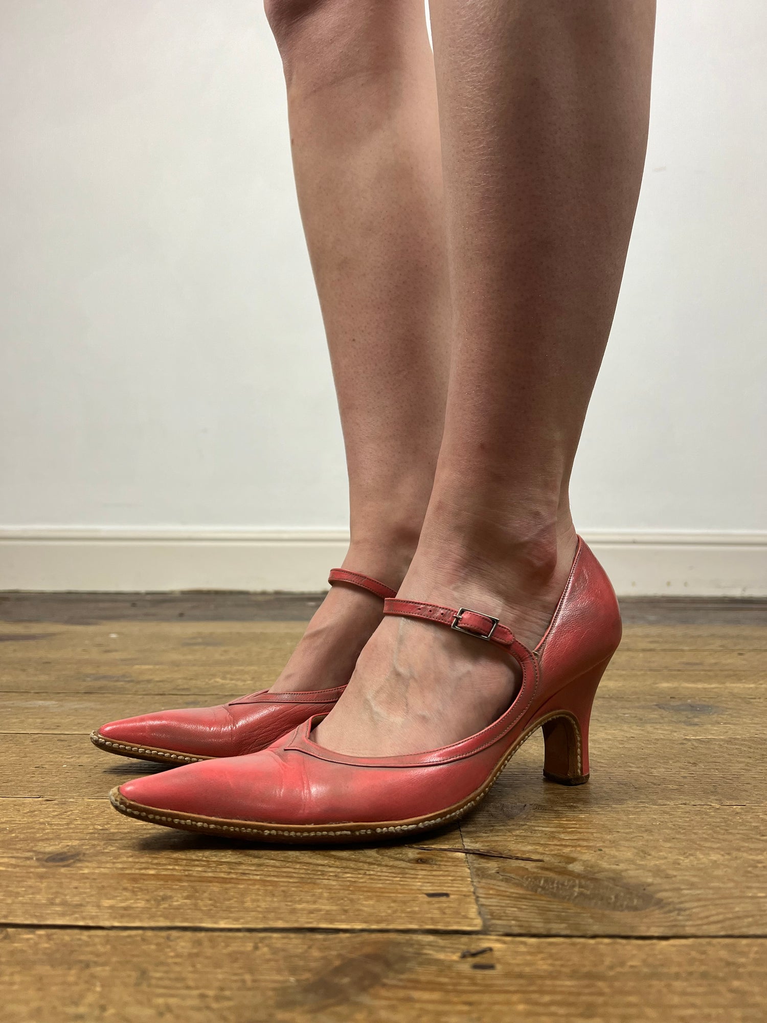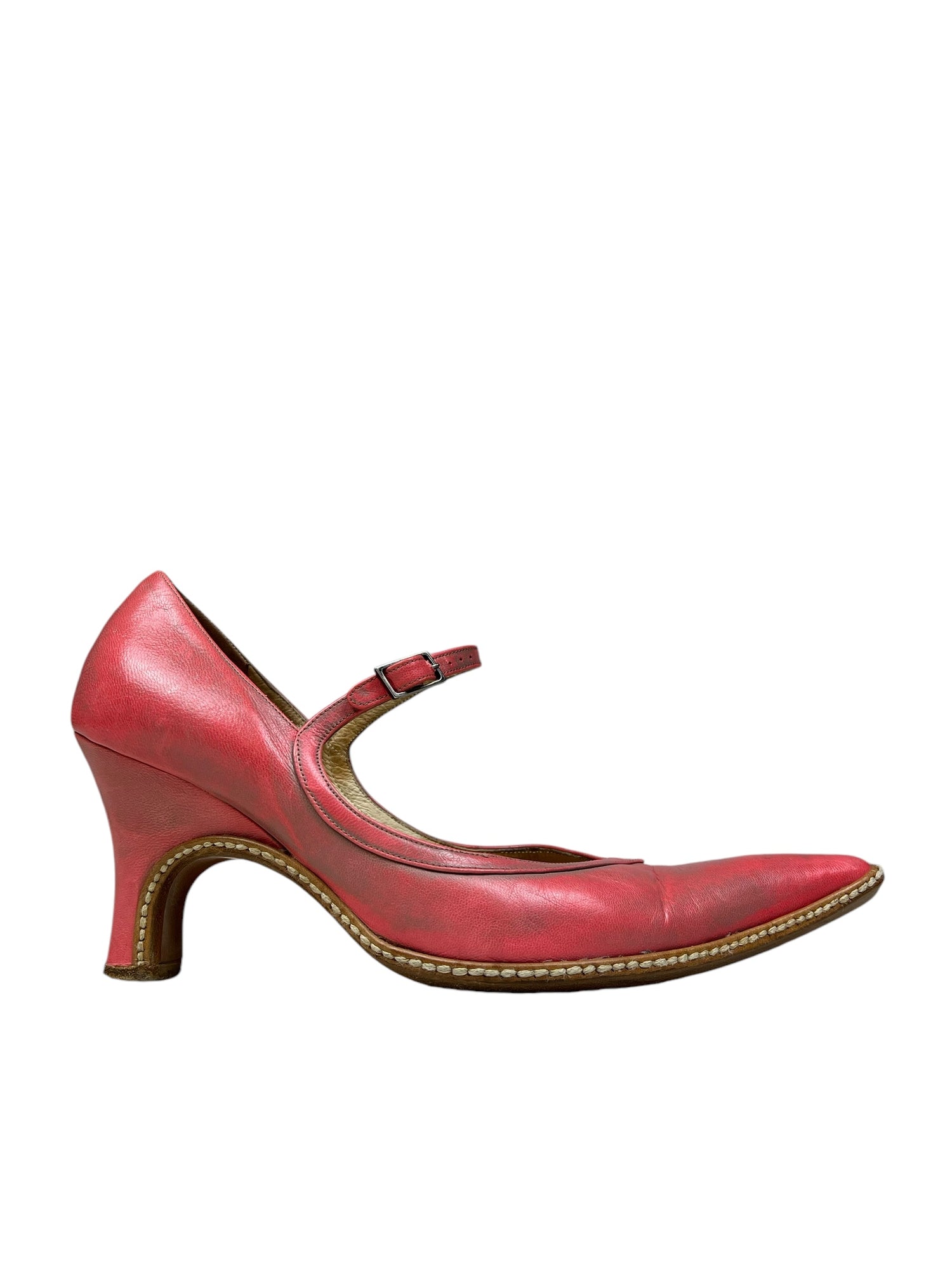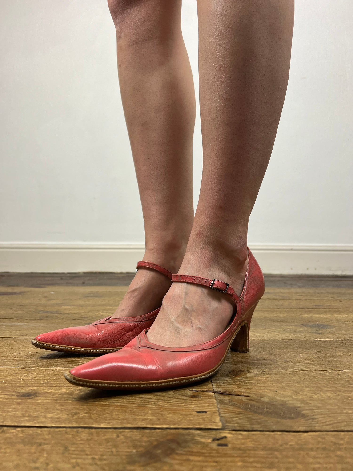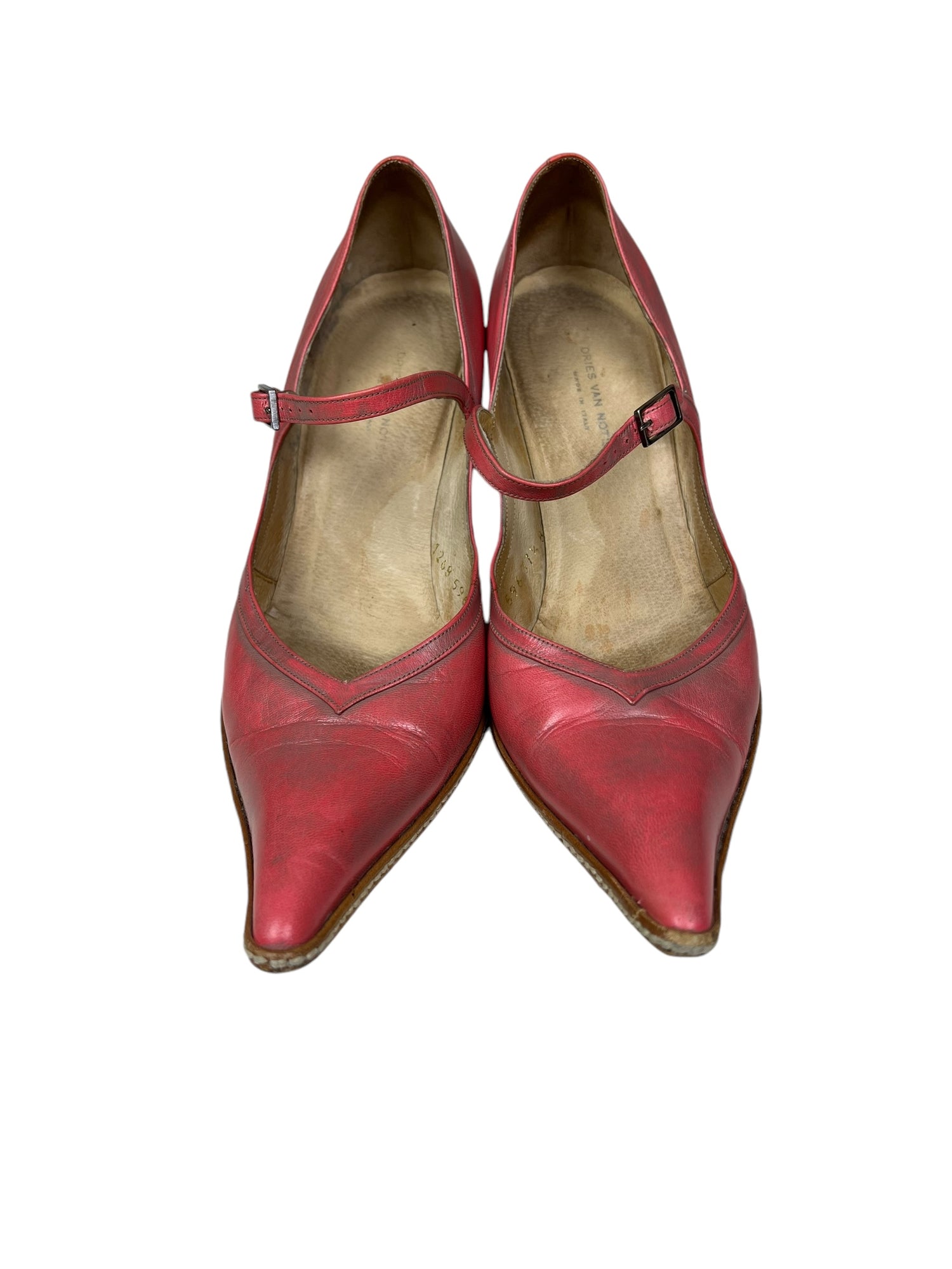 Dries van Noten S/S 2002 kitten heels. Size UK4.5 (EU37.5 / US6.5). Coral pink colour with an aged finished. All details below: