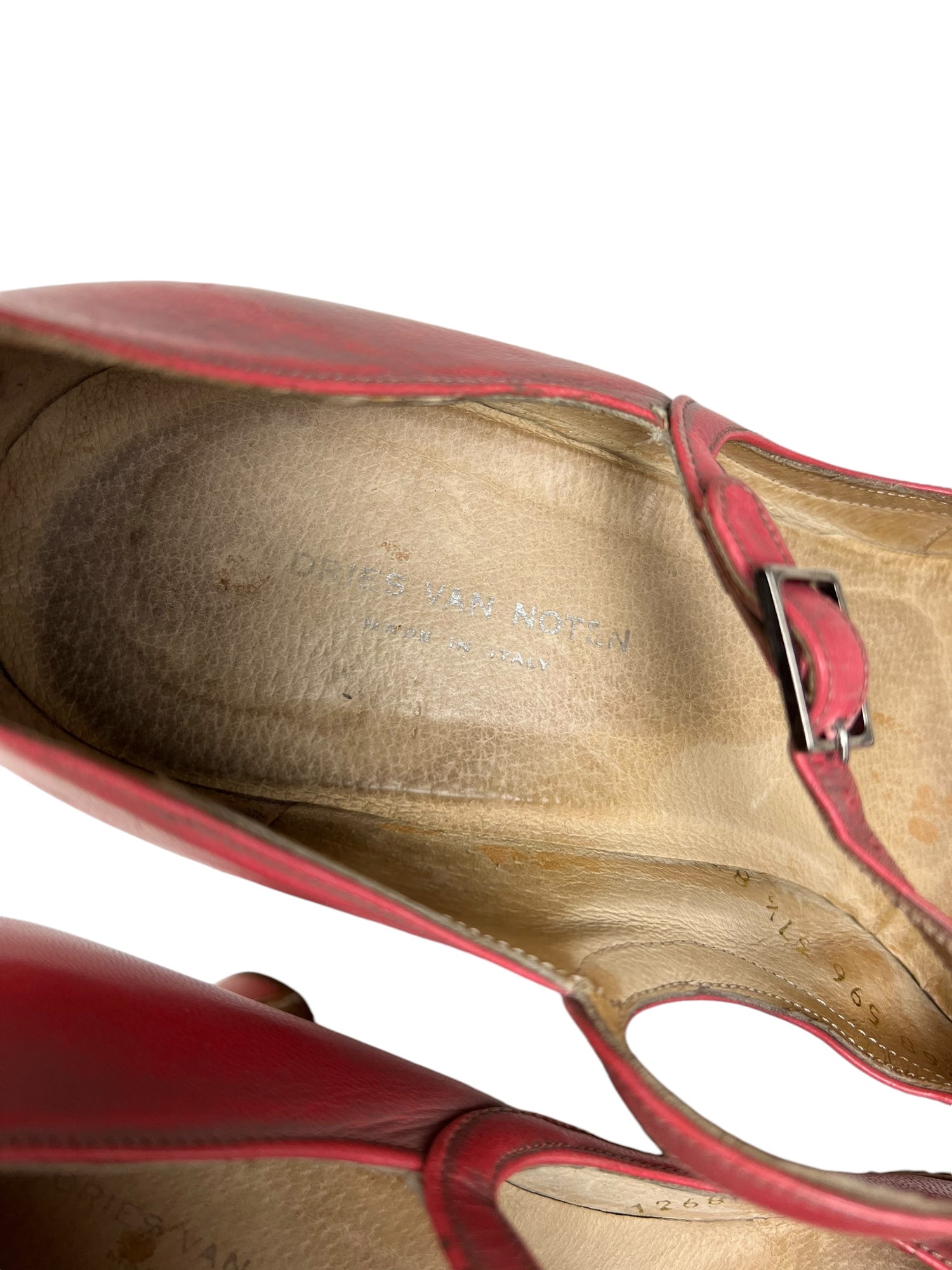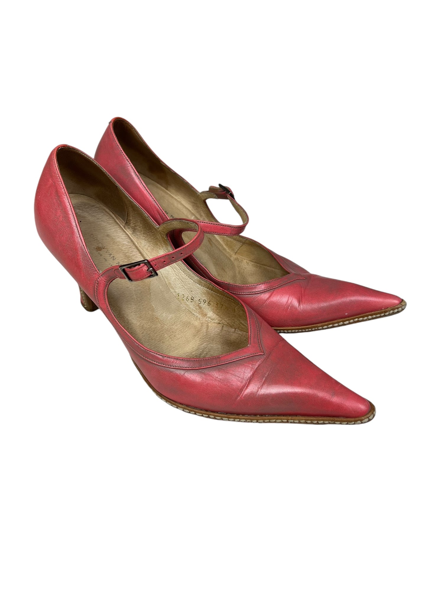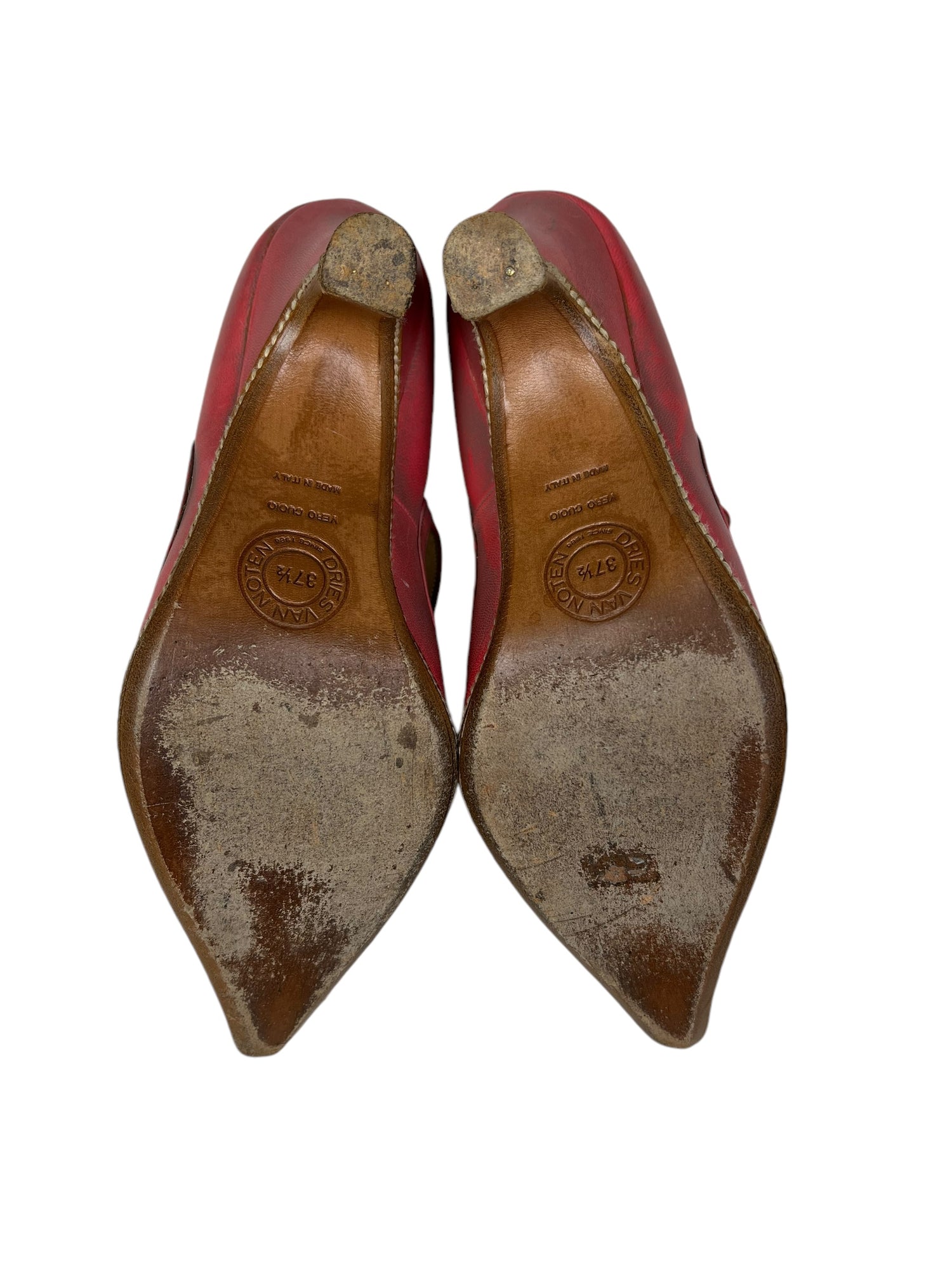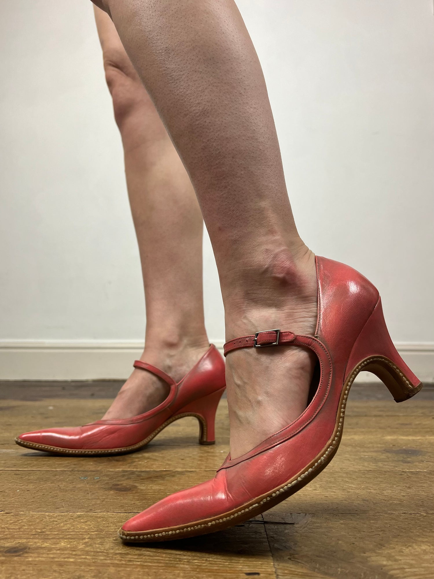 Dries van Noten S/S 2002 kitten heels. Size UK4.5 (EU37.5 / US6.5). Coral pink colour with an aged finished. All details below: