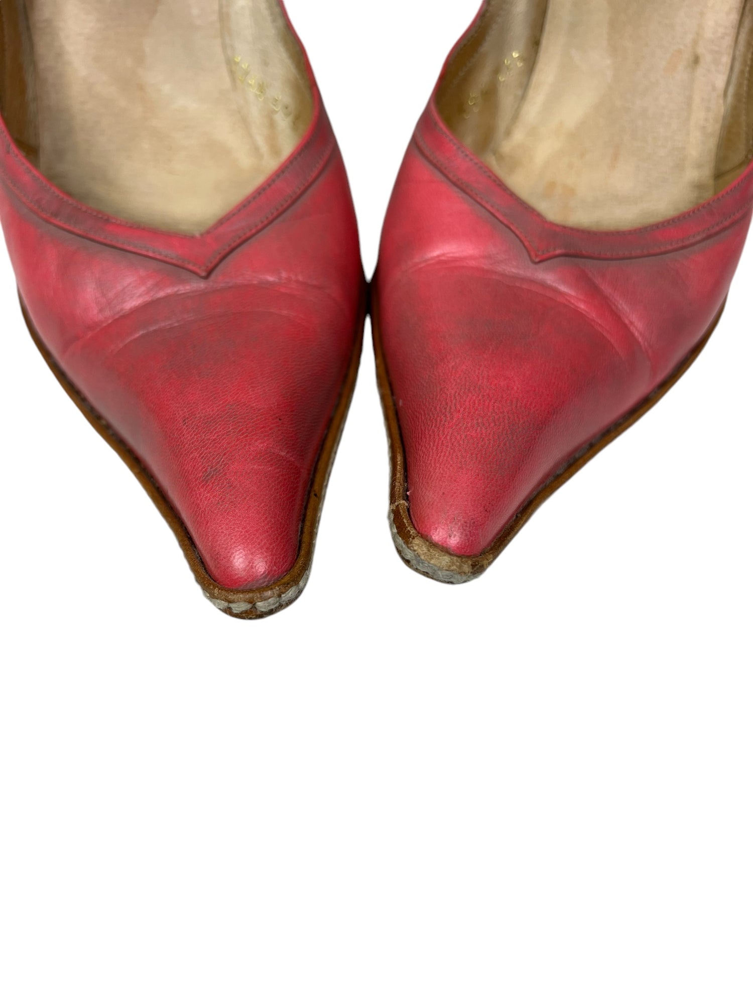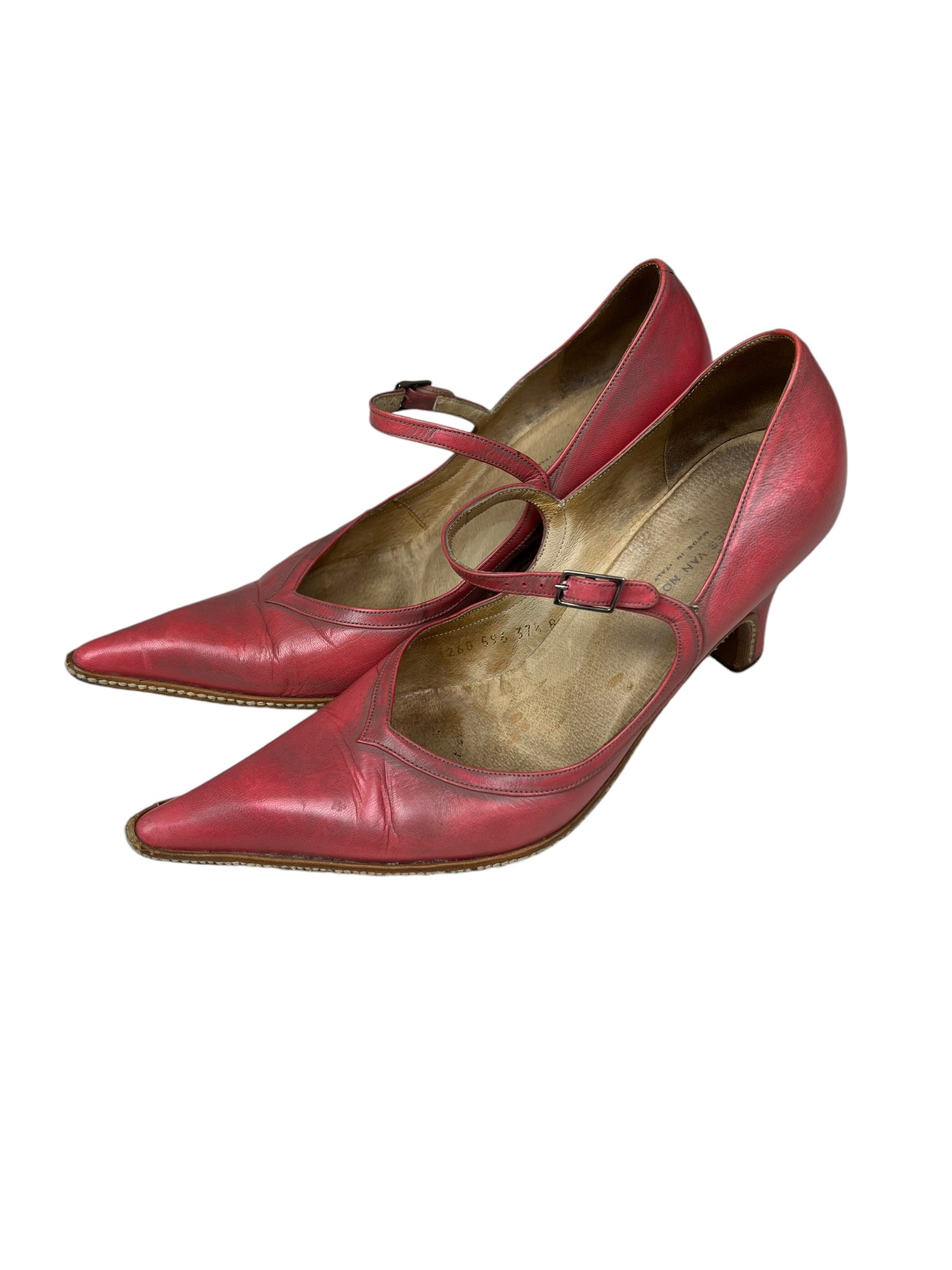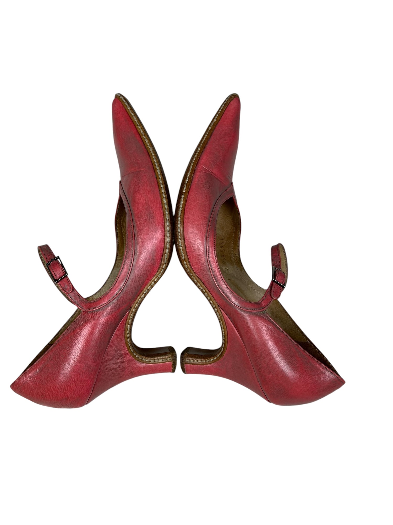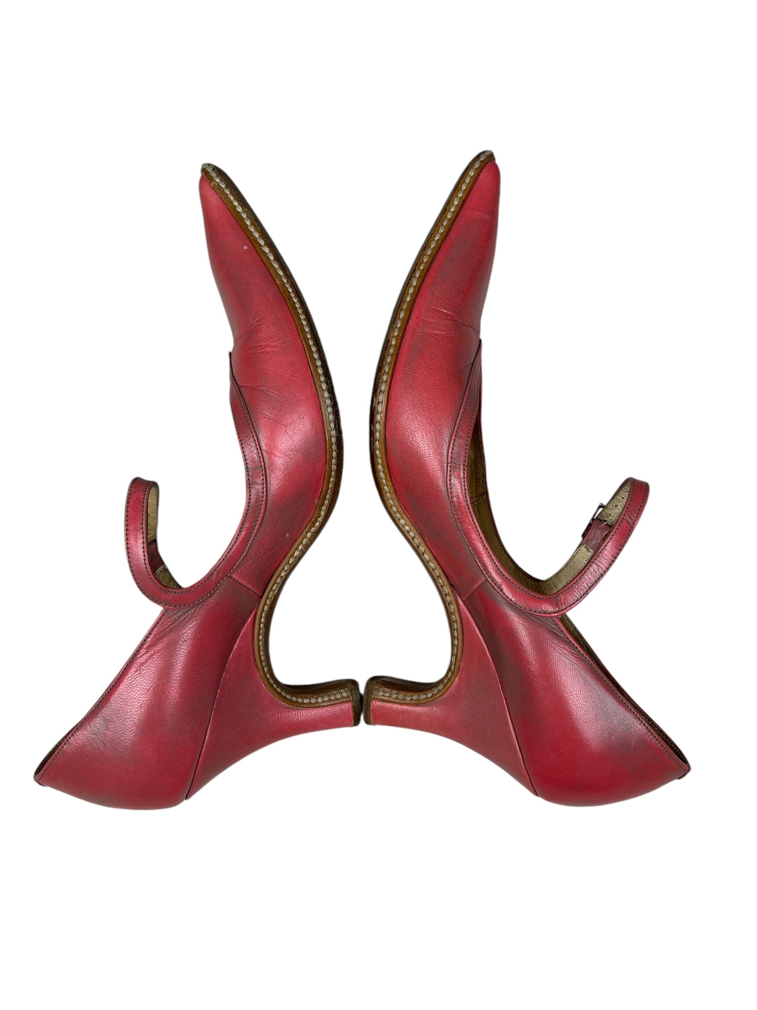 Dries van Noten S/S 2002 kitten heels. Size UK4.5 (EU37.5 / US6.5). Coral pink colour with an aged finished. All details below: