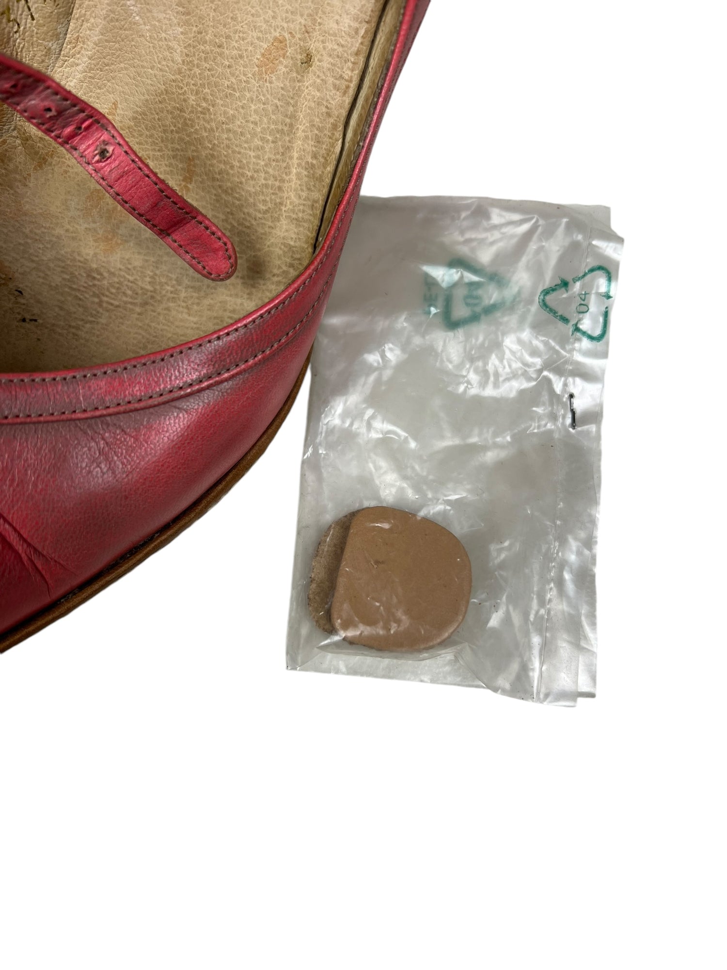 👟Condition is excellent. Sole lightly and evenly worn. Some light scuffs to the leather trim around toes, but not to the upper leather toes themselves. Light creasing across the bridge of the shoes. Buckles in good working order and straps lightly creased. Light wear inside. Replacement heels included. No original box but will be sent in suitable boxed packaging. Made of Leather.